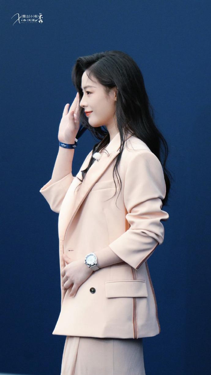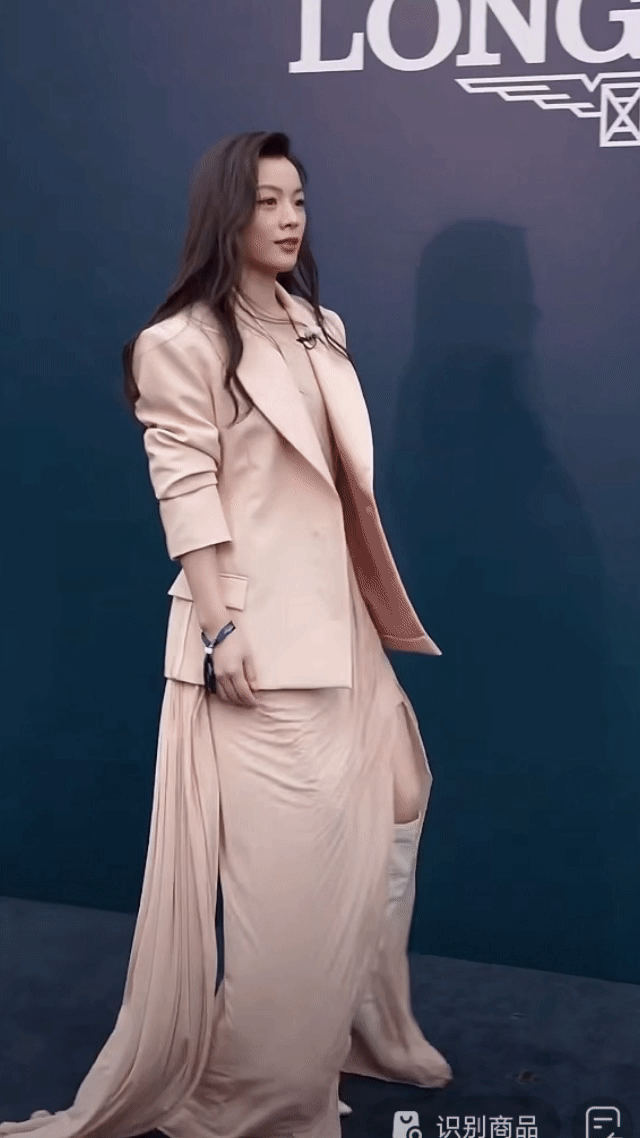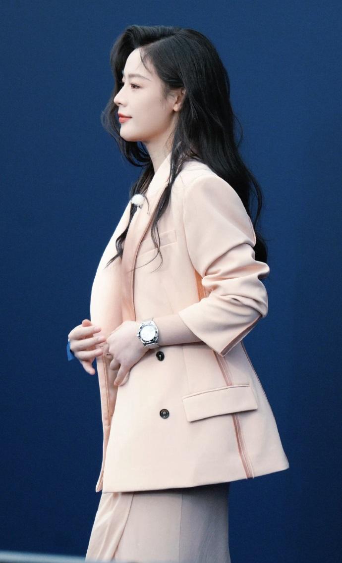 陈丽君里面穿了一件浅色的裙子,外面套着版型很好的西装,两件衣服叠穿起来显得很有层次感,整体效果相当的出众。