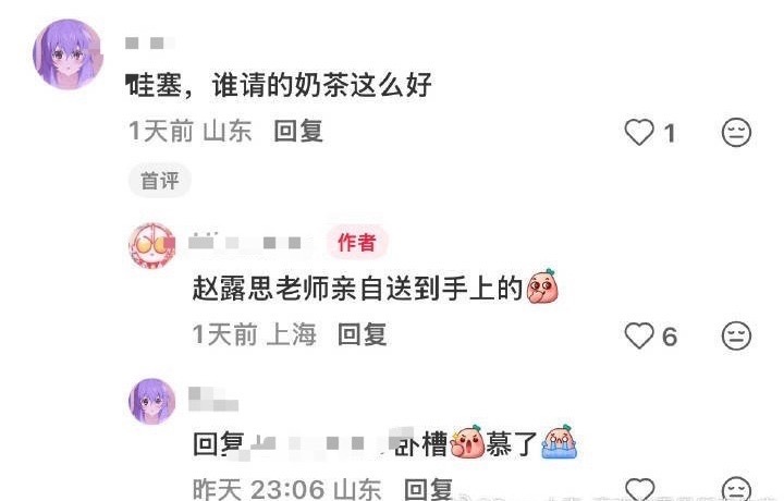 赵露思请百雀羚工作人员喝了奶茶,还亲自送过去呢