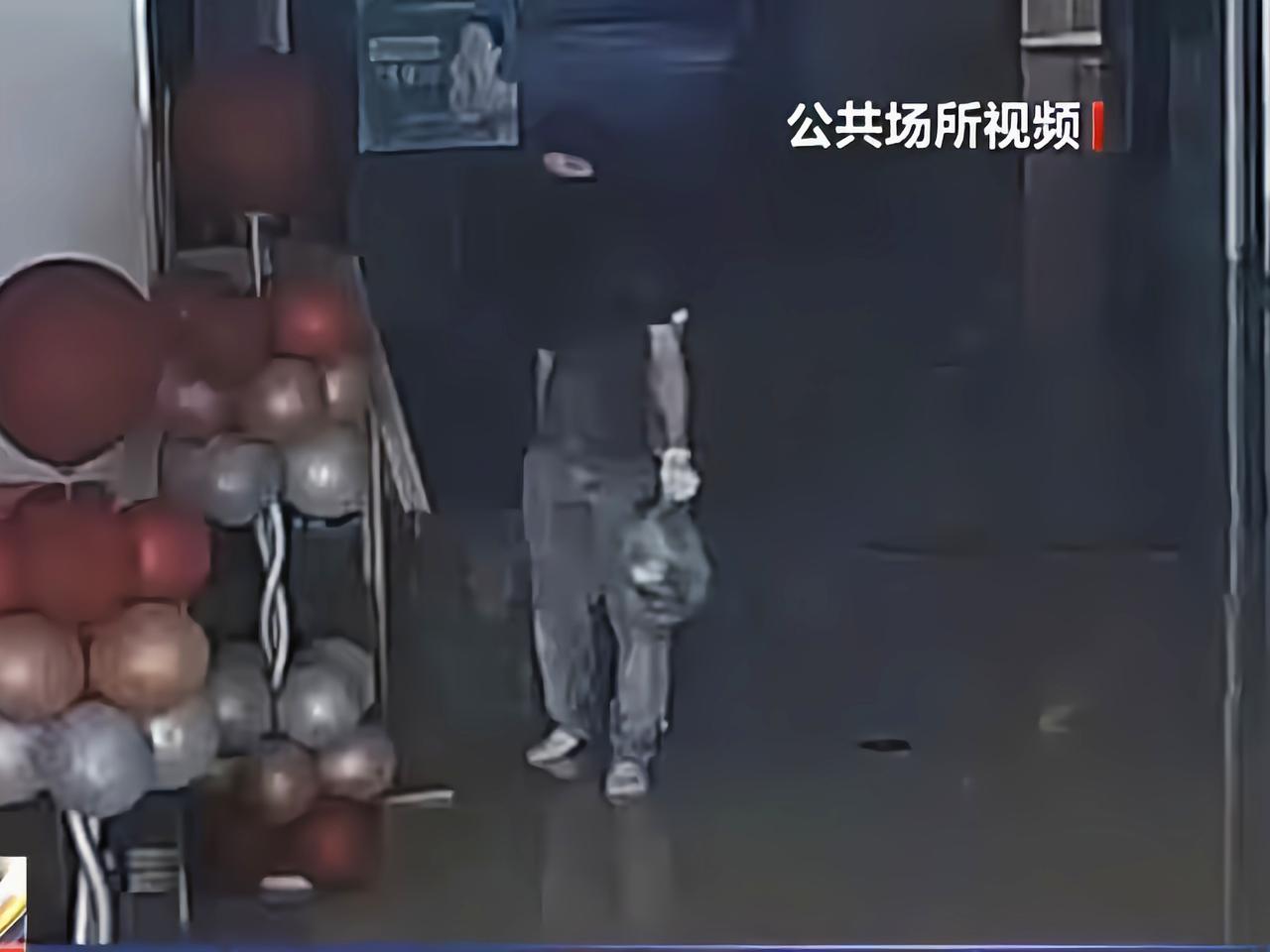 通过安防视频回放,发现凌晨3点14分的时候,一名黑衣男子蒙着面、赤着脚,蹑手蹑脚地走进画面并朝失窃金店走去。此时男子的手里提着一个塑料袋,东张西望的似乎寻找着什么。