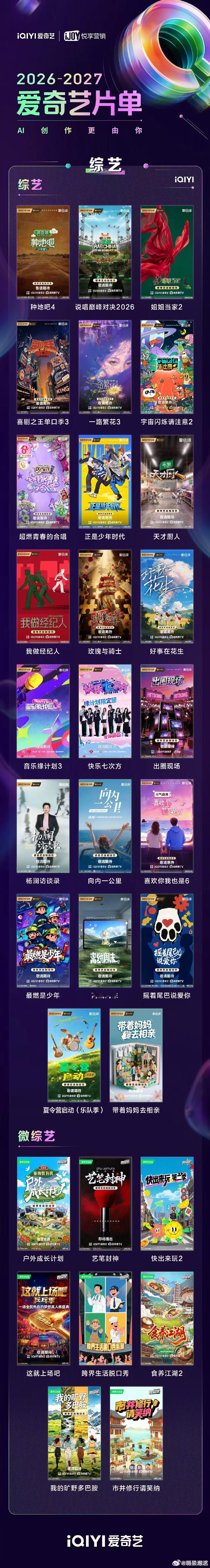 董璇张维伊看了都得说期待爱奇艺一口气发布23部综艺 听说爱奇艺又发布了23部综艺节目,简直是娱乐行业的“超级大礼包”!各种类型都有,满足不同观众的口味,真的太期待了!