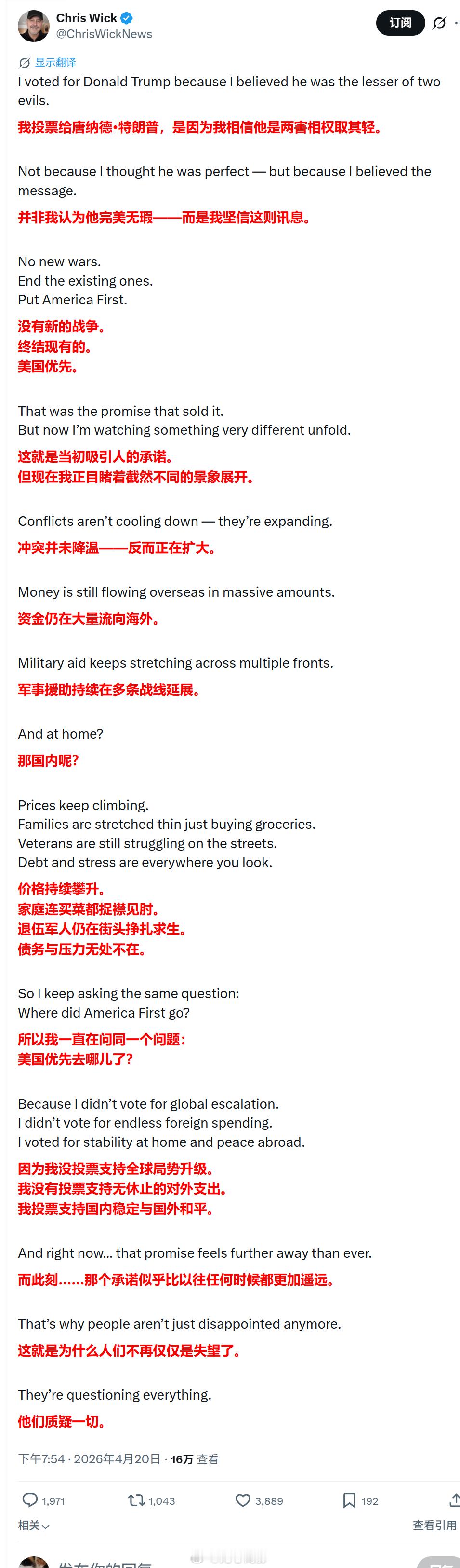 又一名曾经投票给特朗普的选民表示忏悔~