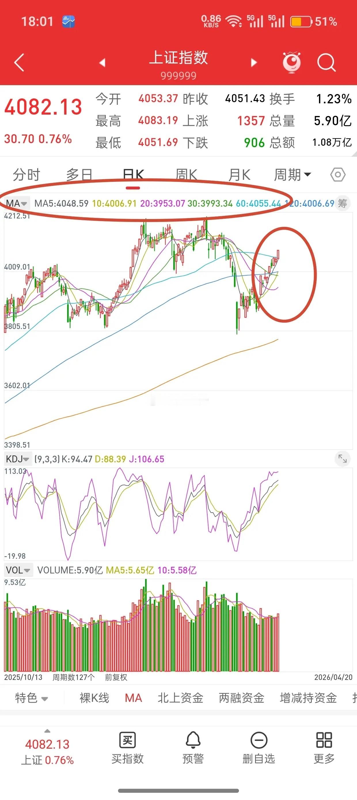 目前均线,5-10-20-30日均线分别是4048,4006,3950,3993等。