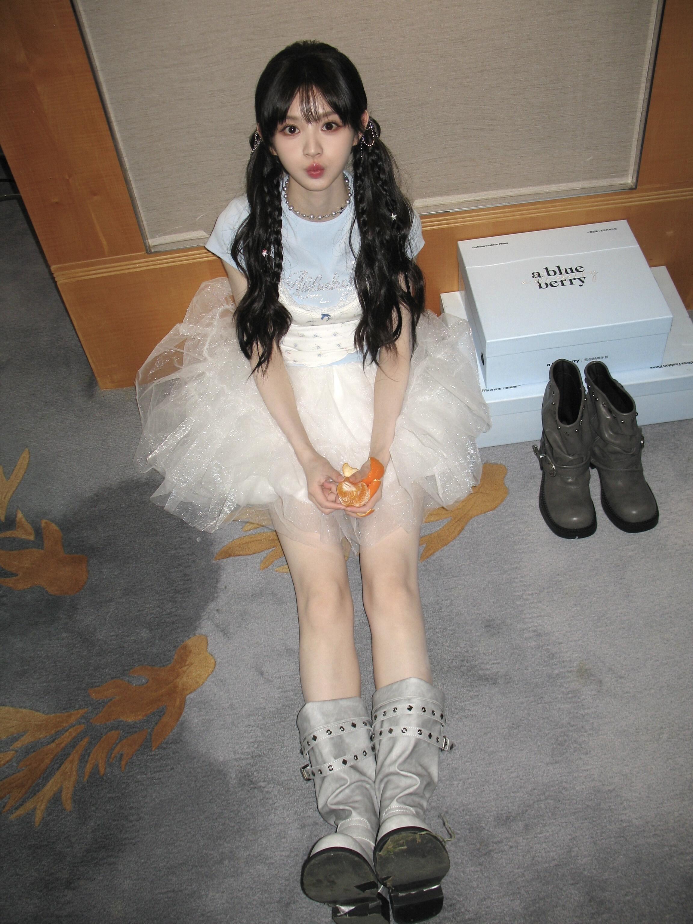 今天完全是双马尾萌神!!!田曦薇双马尾芭蕾风造型田曦薇婴儿蓝芭蕾风纱裙造型