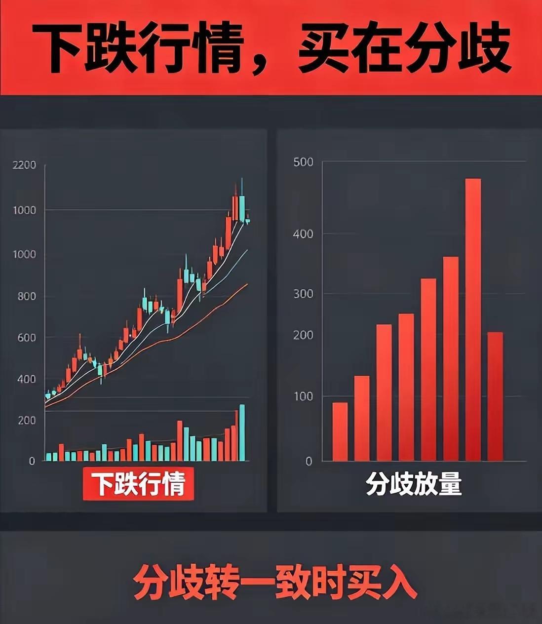 股市万古不变铁律,悟透一辈子稳赚:股市行情风云万变,但底层交易逻辑,再过二十年也不会过时,普通散户一定要牢牢记在心里。 顺势交易的核心法则:上涨趋势,卖在一致;下跌行情,买在分歧。先说上涨趋势里的一致:行情一路走高,市场所有人看法统一,全员乐观追涨,这就是情绪一致。最直观的信号就是放量滞涨,成交量持续放大,股价却涨不动,多方力量耗尽,分歧即将出现,也是高位离场的最佳时机。再讲下跌途中的分歧:行情持续回落,市场人心涣散,多空看法对立,恐慌情绪蔓延,这就是行情分歧。关键判断信号是放量止跌,恐慌盘集中出逃释放风险,空头动能彻底衰竭,往往就是低位布局的机会。看透情绪强弱,分清一致与分歧,顺势买卖,才能在股市长久生存。