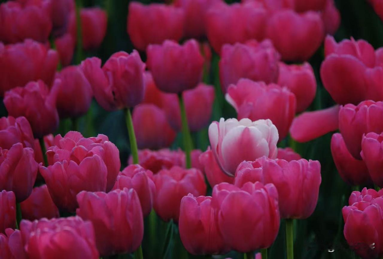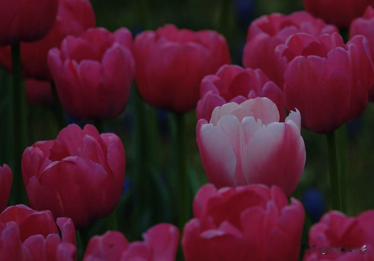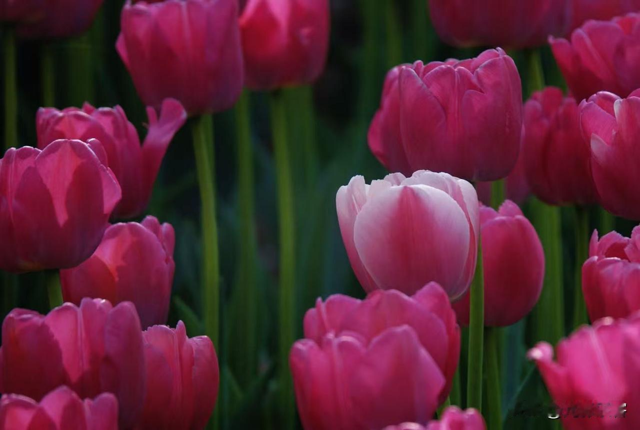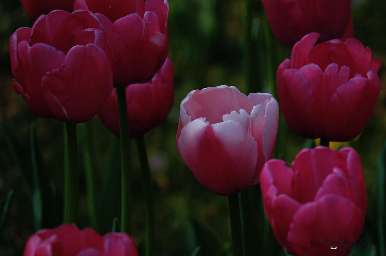 在拍郁金香的时候,发现在红色的郁金香群里掺杂了几个白了头的郁金香。感觉就像我的花白头发。我就是前面让别人经常看到的地方是白色的头发,后面看一点白头发没有。同事都说你前面看白发苍苍,后面看像小伙子。为此我就专门多拍了几张白头郁金香。交换一张你拍的郁金香吧