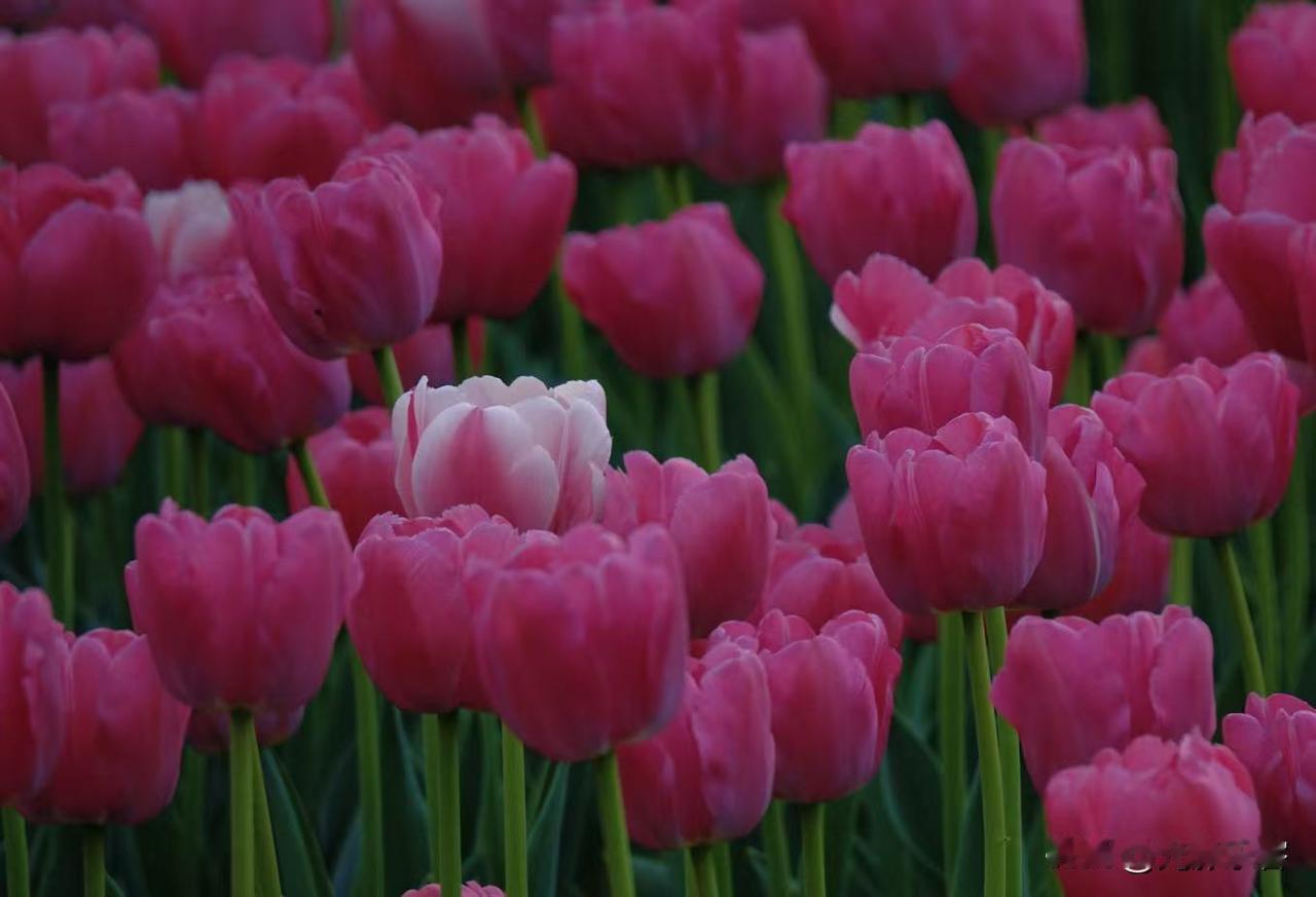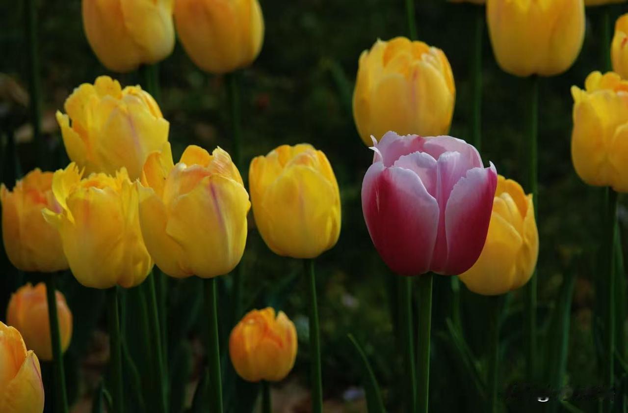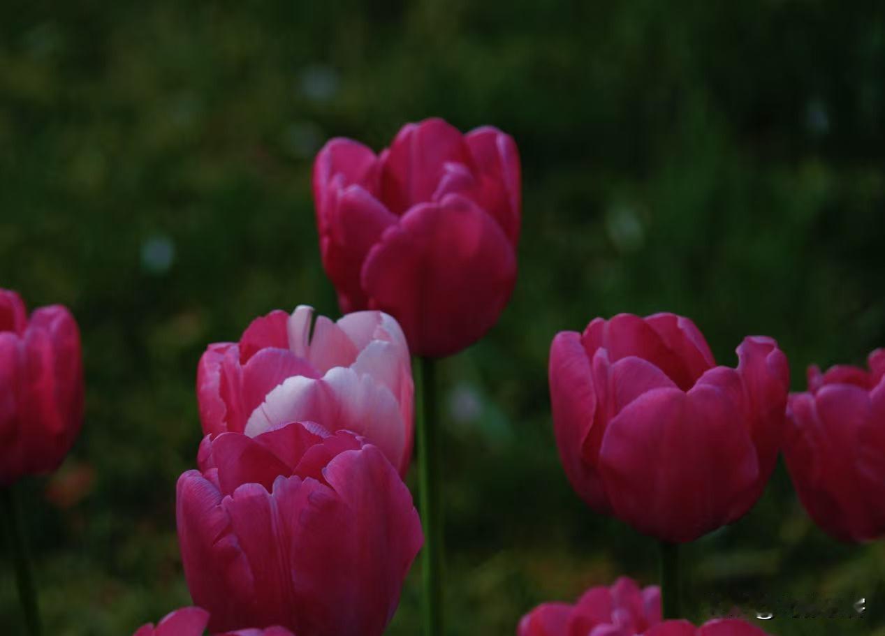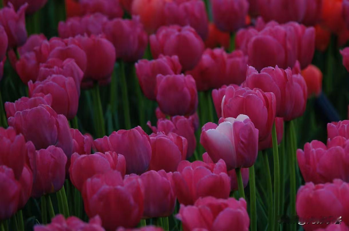 在拍郁金香的时候,发现在红色的郁金香群里掺杂了几个白了头的郁金香。感觉就像我的花白头发。我就是前面让别人经常看到的地方是白色的头发,后面看一点白头发没有。同事都说你前面看白发苍苍,后面看像小伙子。为此我就专门多拍了几张白头郁金香。交换一张你拍的郁金香吧