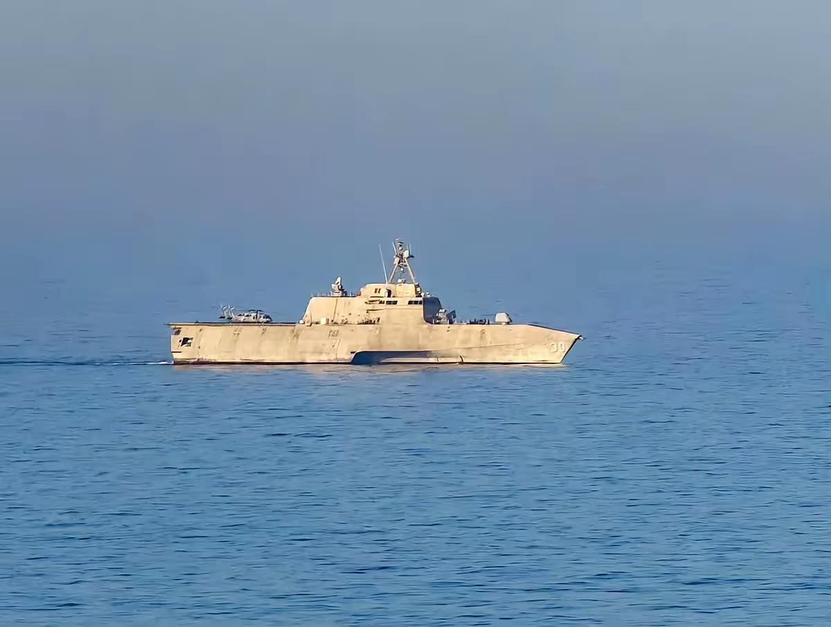 美国中央司令部发布照片,宣称独立级濒海战斗舰“堪培拉”号(LCS-30)开始在阿拉伯海-阿曼湾执行封锁任务,同时美国陆军航空兵的AH-64 “阿帕奇”武装直升机低空巡逻,加强空中监控和封锁能力。美国中央司令部还称,目前已有23艘船只遵照美军指令返航。