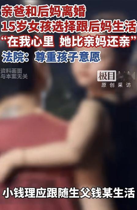 面对法官的询问,女孩没有丝毫犹豫,明确表示,自己愿意跟着继母生活。她告诉法官,这十多年来,一直是继母在照顾她、包容她,不管遇到什么事,继母都会站在她身边,而父亲,除了赚钱,几乎没有尽过做父亲的责任,有时候甚至会忽略她的感受。所以,就算父亲和继母离婚,她也只想跟着继母,不想跟父亲一起生活。