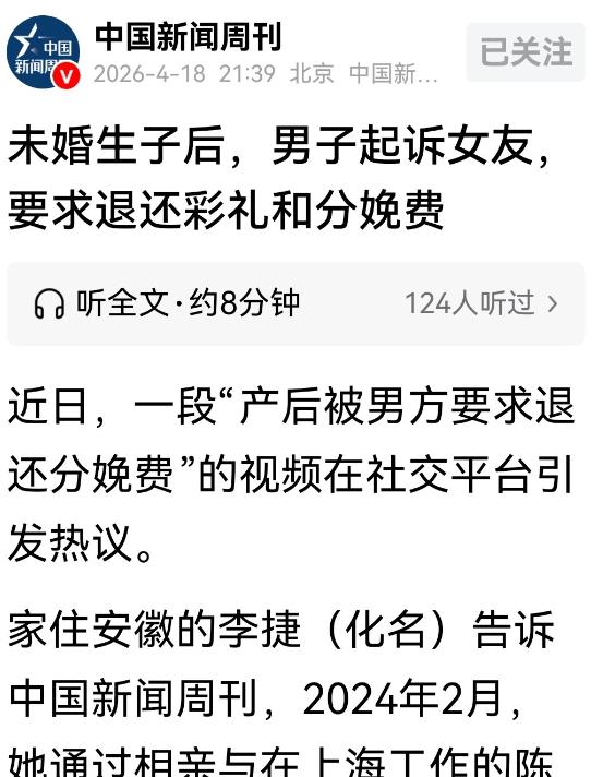 彩礼能裁判、抚养费能裁判,可生育带来的身体代价、经济代价、机会代价,很多时候既难量化,也很难在诉讼里被完整覆盖。李捷从恋爱到生育自己花了将近九万,比男方给的彩礼还多;