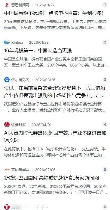 一个国家真正的底牌,不一定是外界最先看见的那张牌,而往往是最耐磨、最能扛、最经得起时间检验的那张牌。中国这些年给世界的启示,恰恰不在于某一天赢得多漂亮,而在于始终能朝着既定方向稳稳往前走。别人忙着追逐下一次情绪波动时,中国已经把下一阶段的路基、桥墩和轨道悄悄铺好了。等很多人回过神来,才发现原来真正让人睡不踏实的,不是谁喊得最响,而是谁总能把明天、后天、十年后都算进今天。