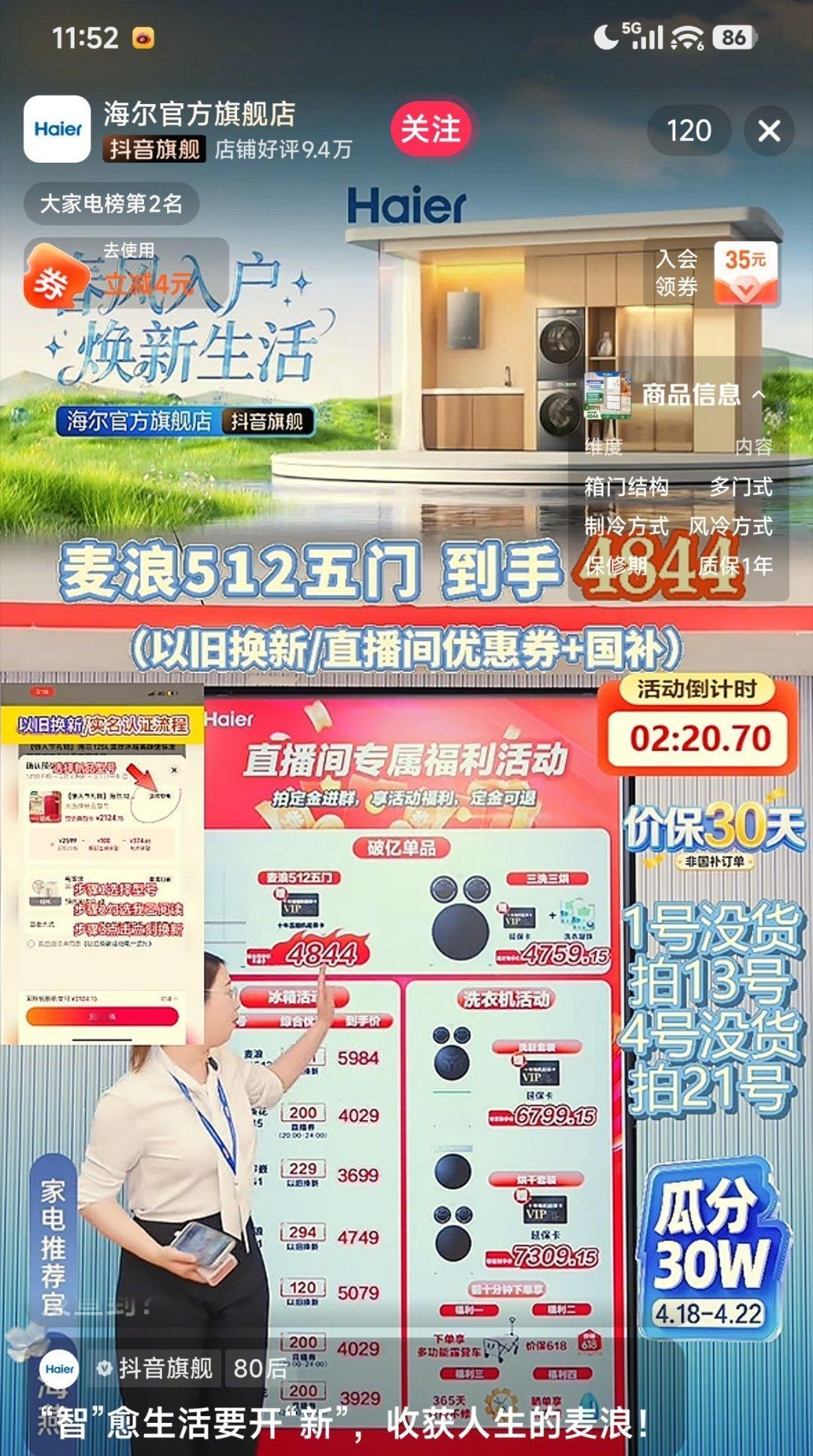 这个时间段,抖旗舰店直播间在线人数一览:九号电动车(代言人易烊千玺)362人。安吉尔饮水机(代言人肖战)9人。海尔电器(无代言人)120人