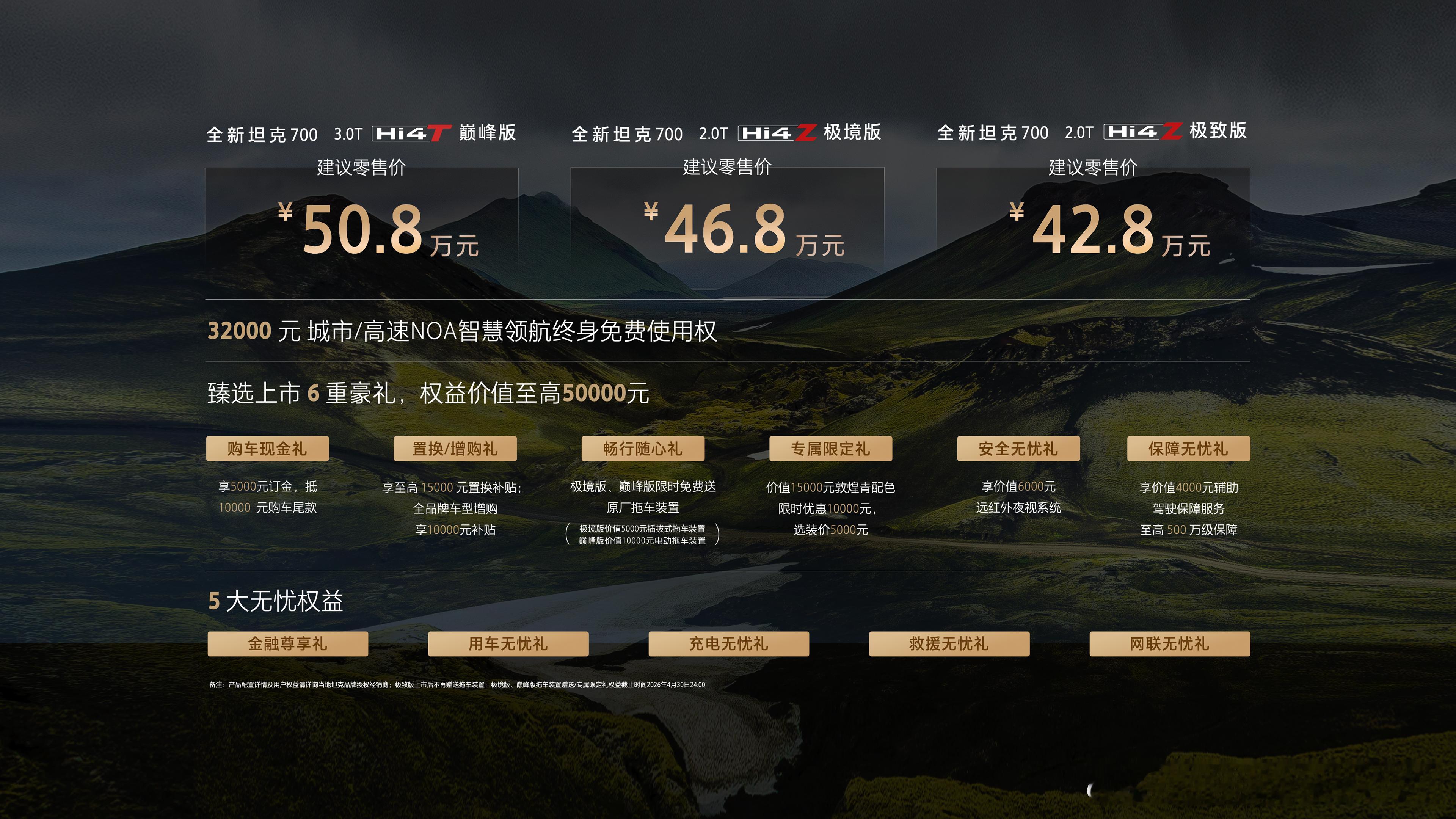 4月20日,全新坦克700正式上市,售价42.8万元起。这场以“麒麟云中现·境启新人生”为主题的发布会,不仅是一款新车的亮相,更是中国品牌向全球豪华越野高地发起的一次宣言。