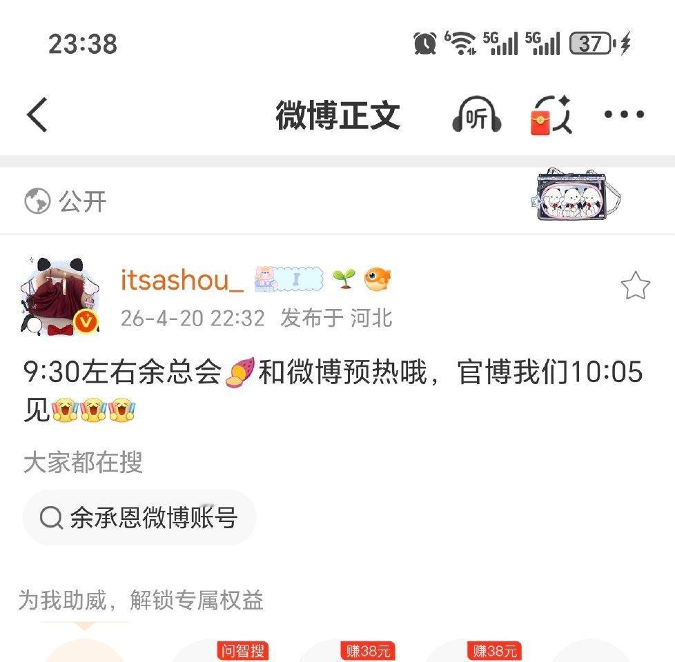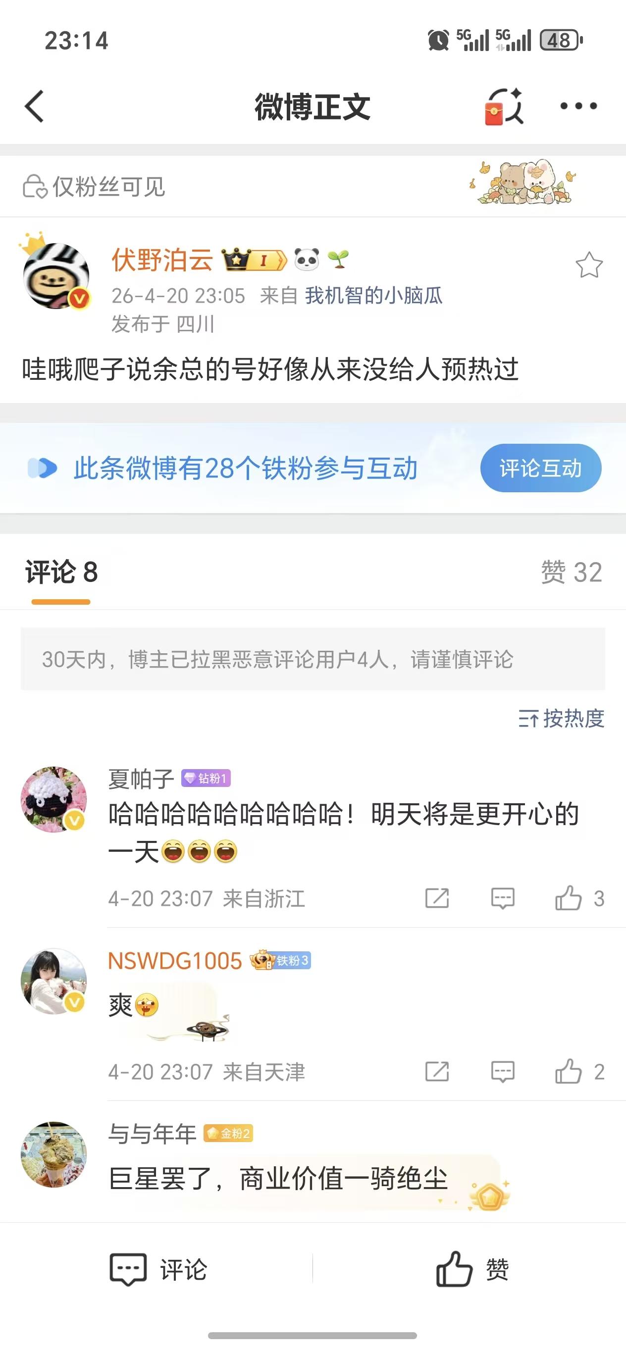 明早九点半🚗预热,据说余总以前没给别人预热过[呲牙][奸笑]