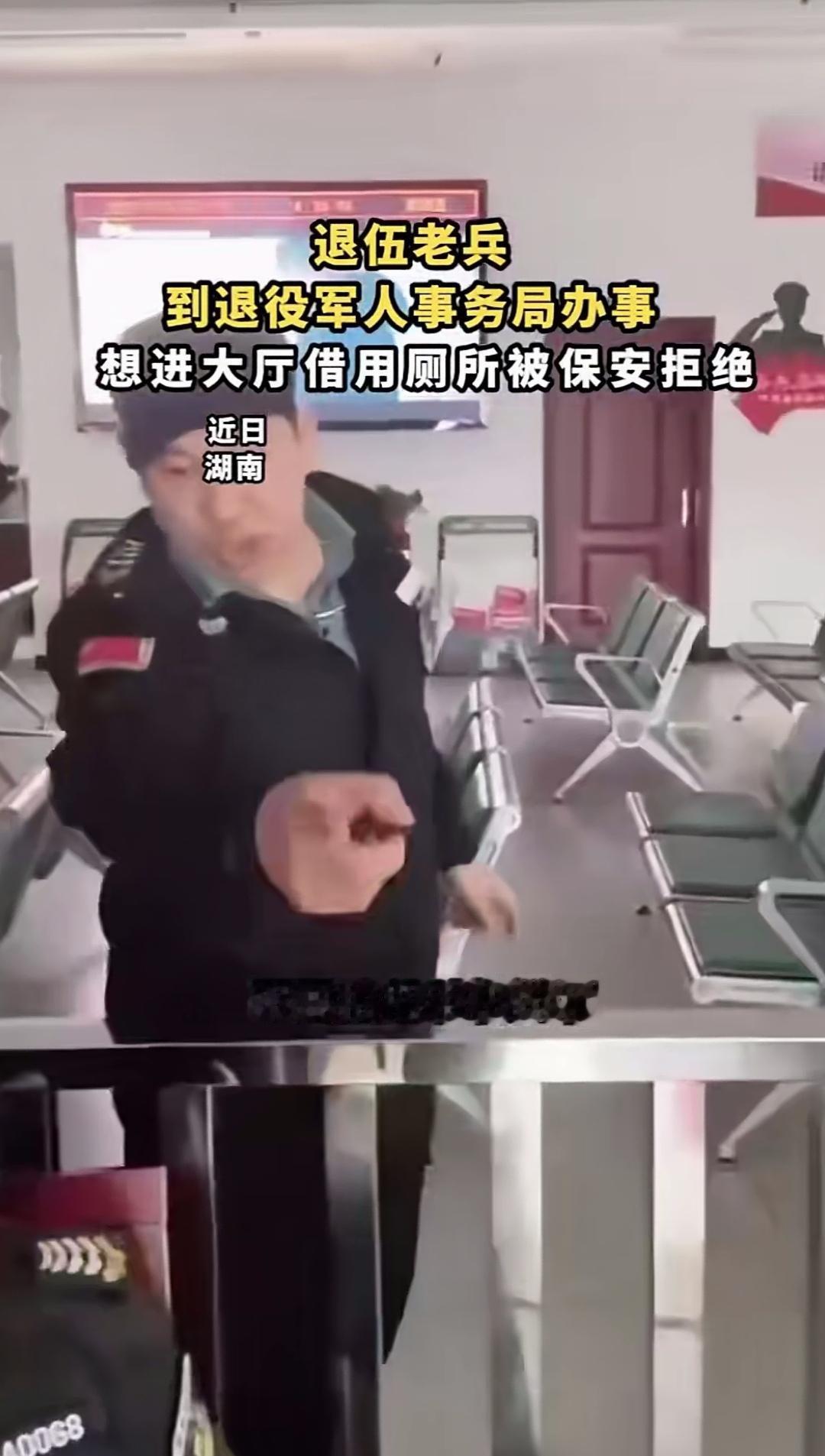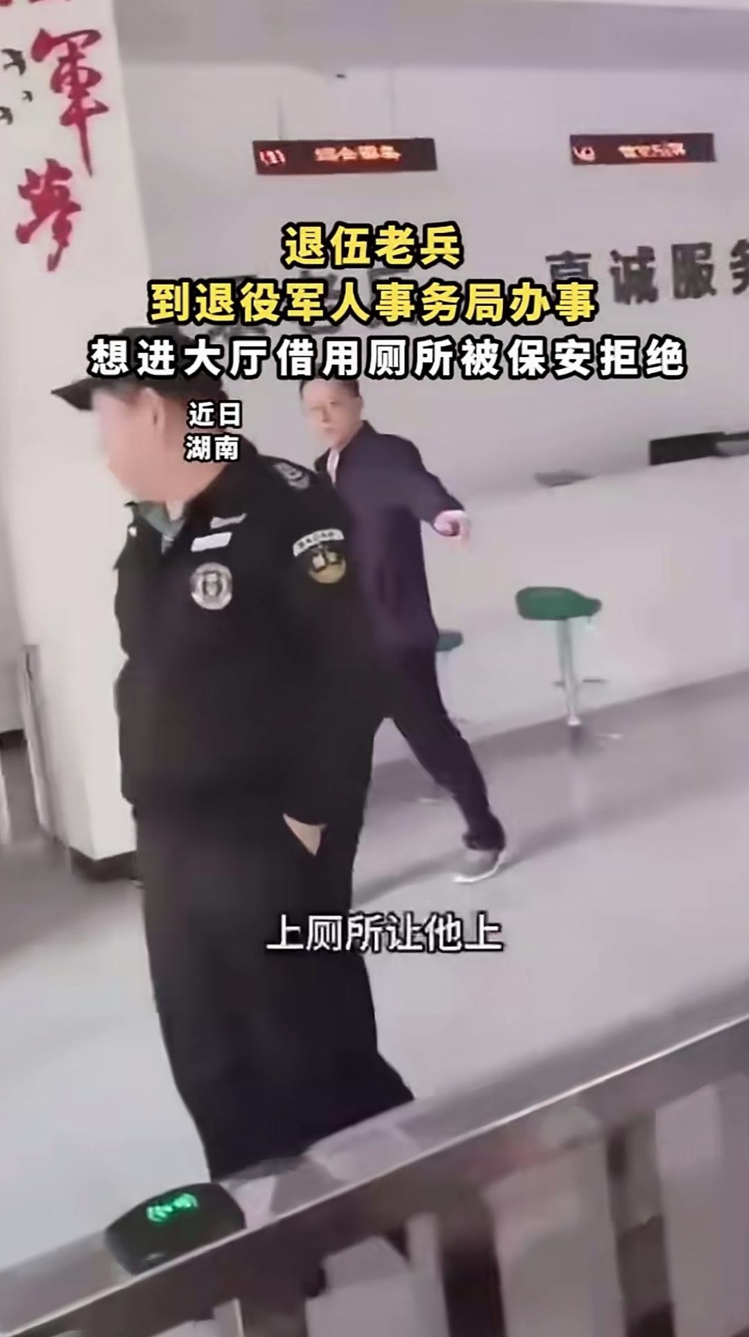 退伍老兵到退役军人事务局办事,想进大厅借用厕所,被保安无情拒绝!