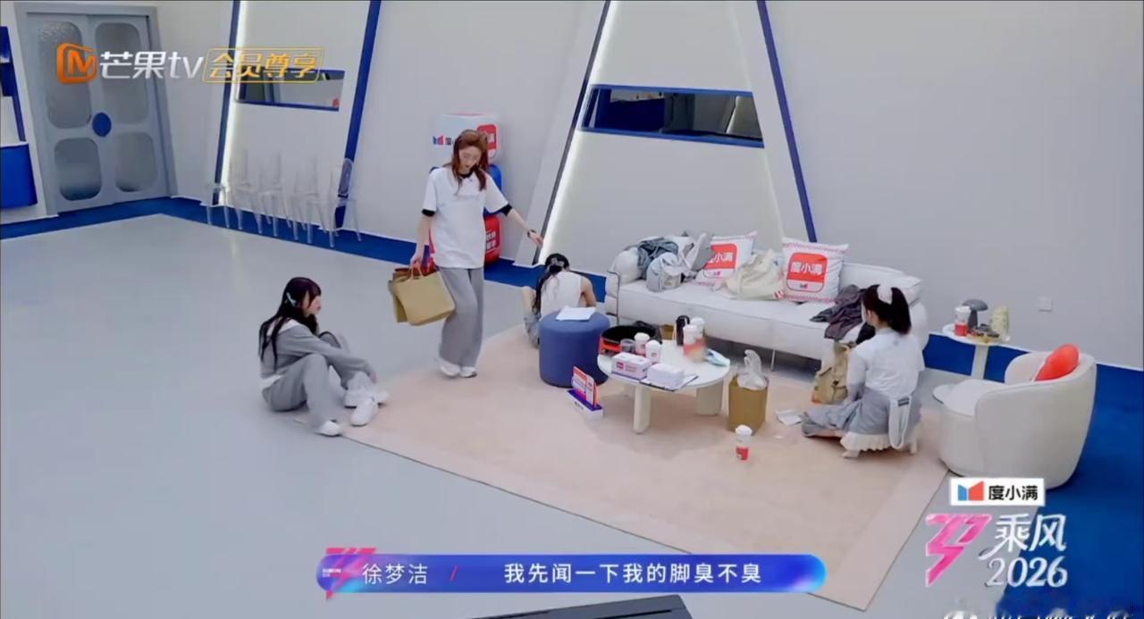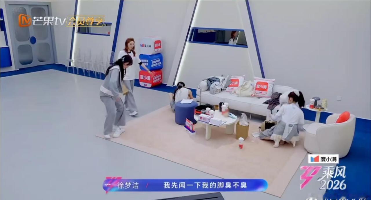 徐梦洁:我先闻闻,不臭再吃饭。观众:你闻之前想过我们的感受吗?小彩虹:没有,我只在乎我的脚。这段对话,笑死。
