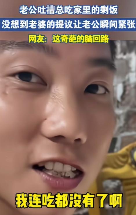 广西,一老公吐槽总吃家里的剩饭,没想到老婆提议让老公瞬间紧张起来。