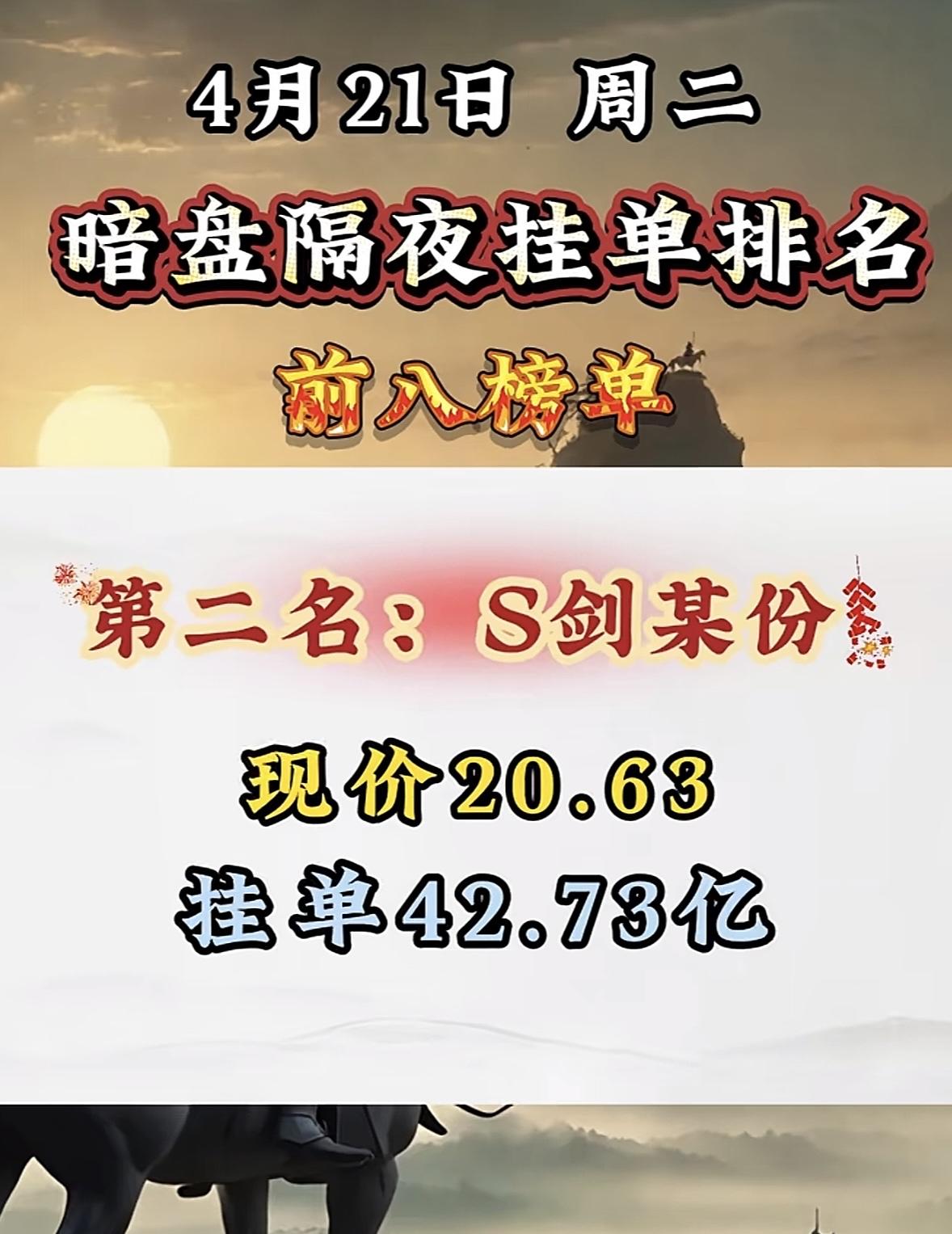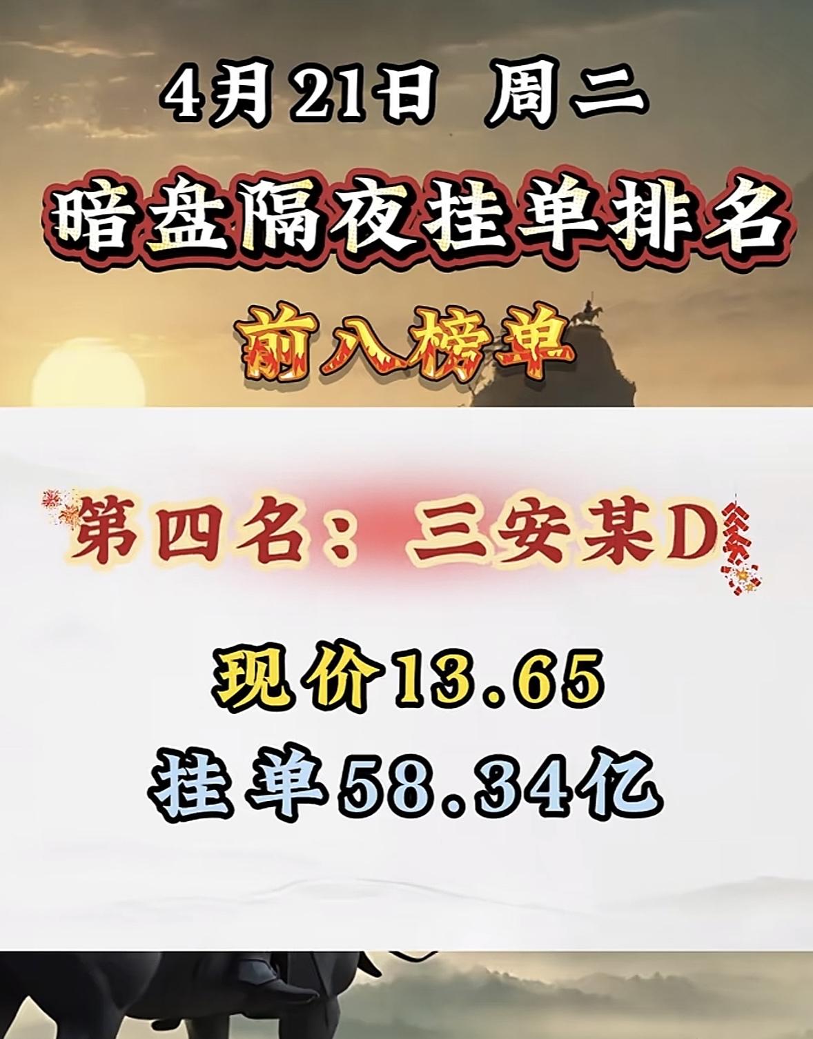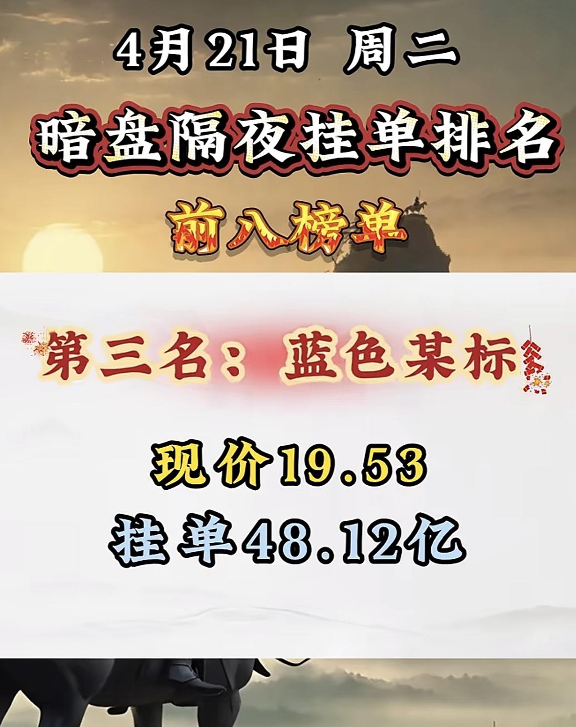 4月21日周二暗盘隔夜挂单排行榜出炉
