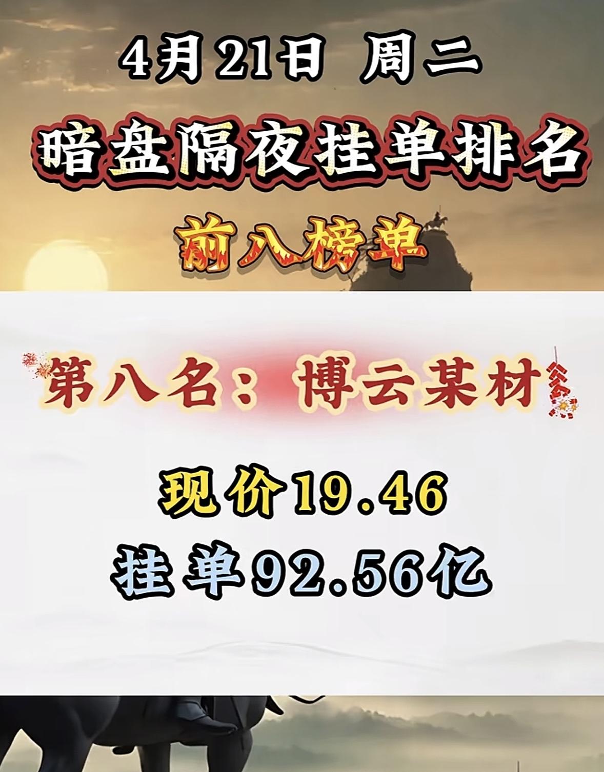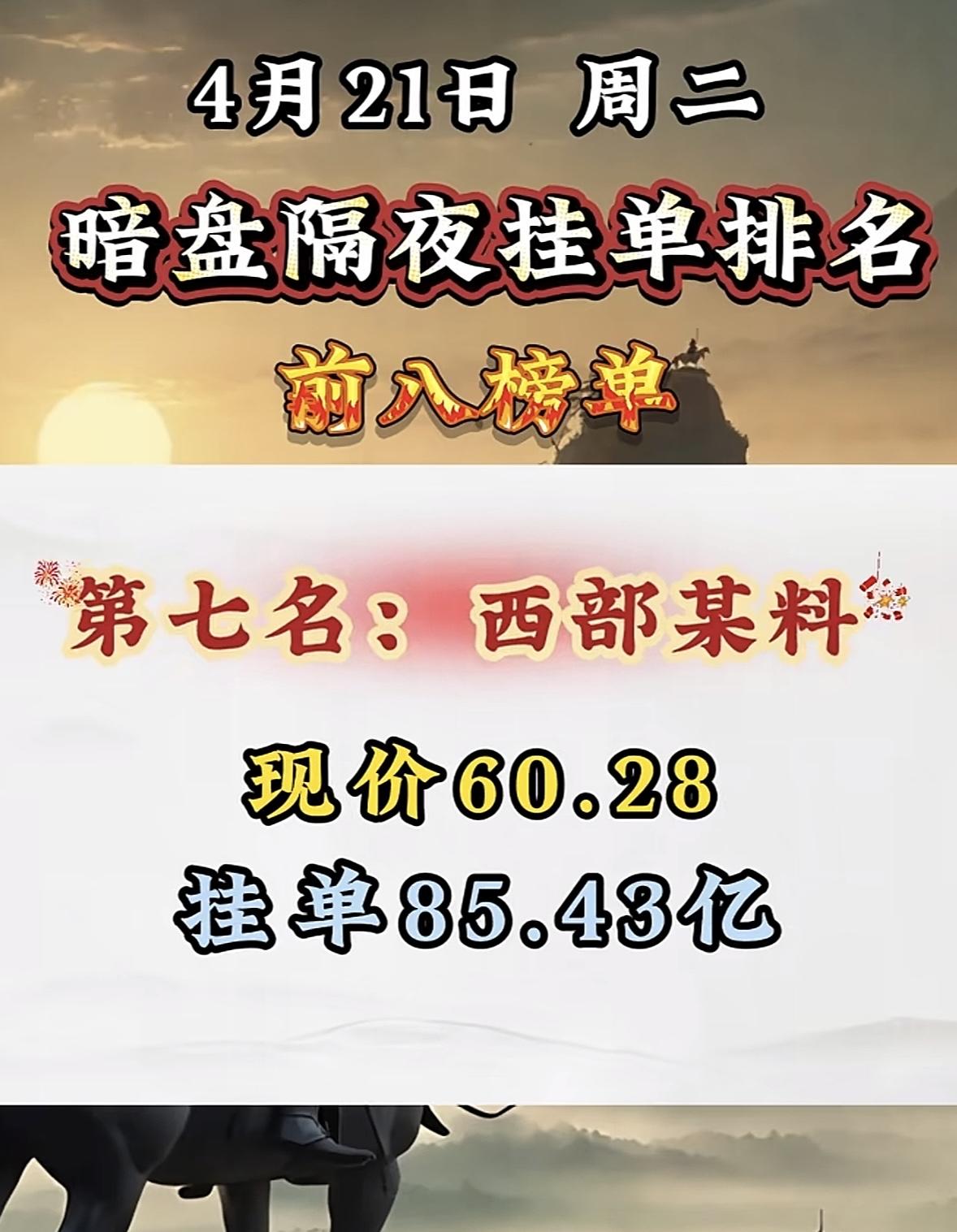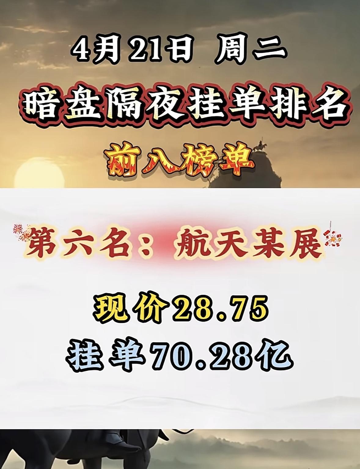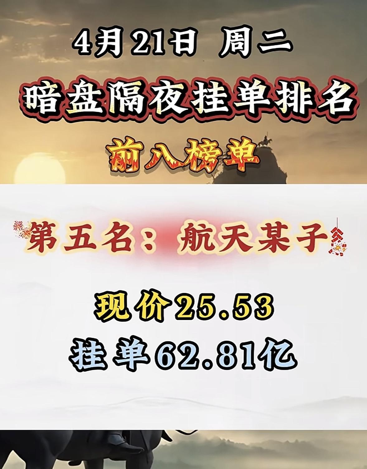 4月21日周二暗盘隔夜挂单排行榜出炉