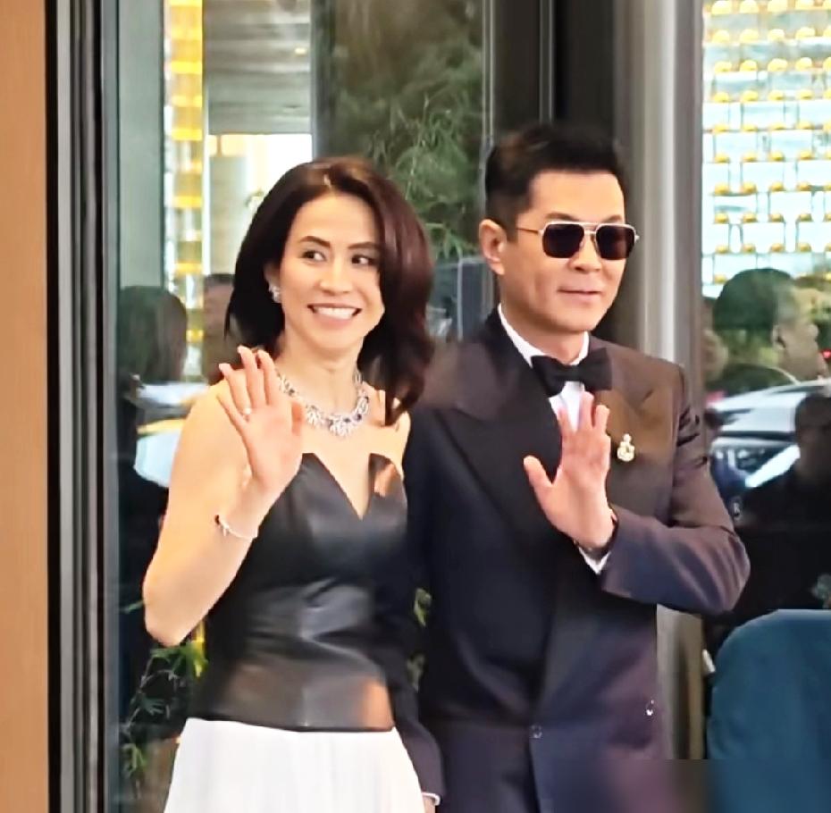 宣萱一身白裙,侧身过去,手指轻轻帮他理了理衣领。古天乐没看镜头,就低头看着她笑,那眼神,你自己品。