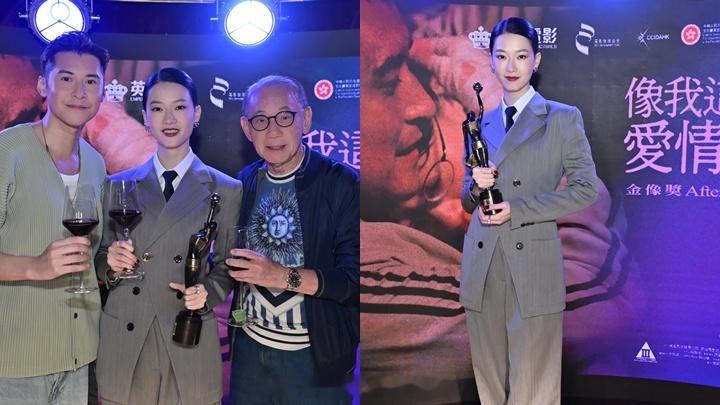 她感性表示,拍摄期间建立的情感真实又珍贵,戏从来不是一个人的事,而是整个团队的成果,她会永远记得在飞鹅山拍摄的浪漫时刻。她也将荣誉归功于这部作品,多谢《像我这样的爱情》把她送上颁奖台,并感谢投资方英皇电影。