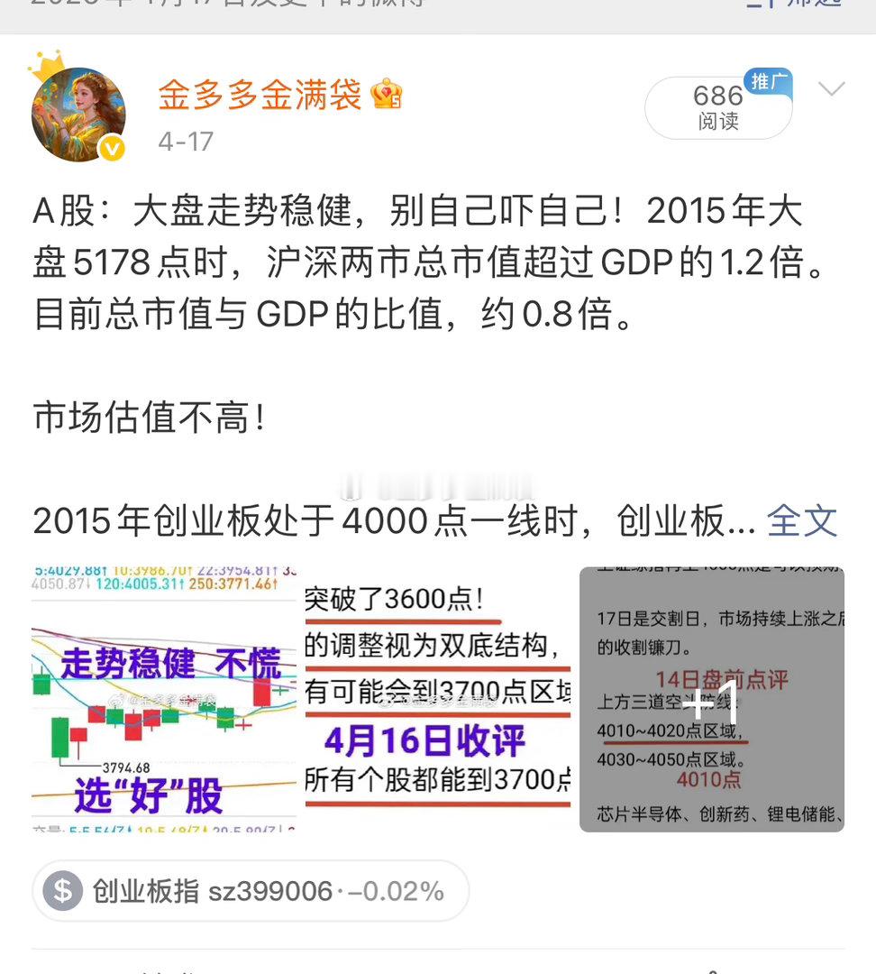 A股:主力很给面子,创业板指无限逼近3700点,大盘离金姐预测的目标4100点也不远了。短期大盘会调整吗?