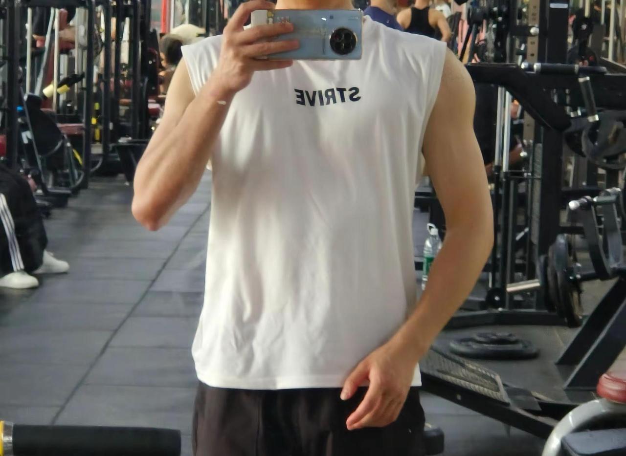 75岁王石在健身房锻炼身体被偶遇,他穿着一身运动服,在一名男教练的指导下做臂力训