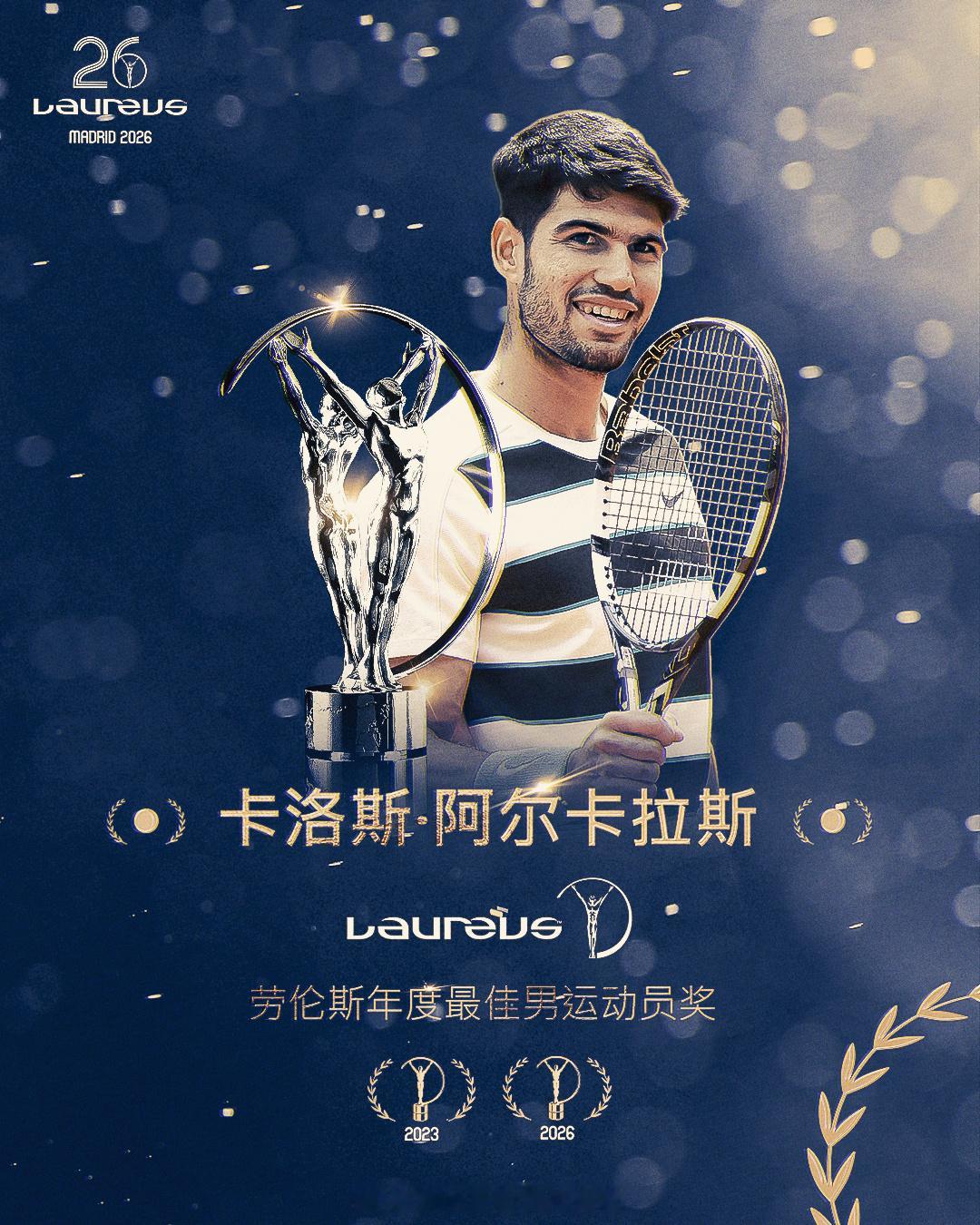 阿卡获得今年劳伦斯年度最佳男运动员奖!恭喜鸭鸭!阿尔卡拉斯劳伦斯最佳男运动员