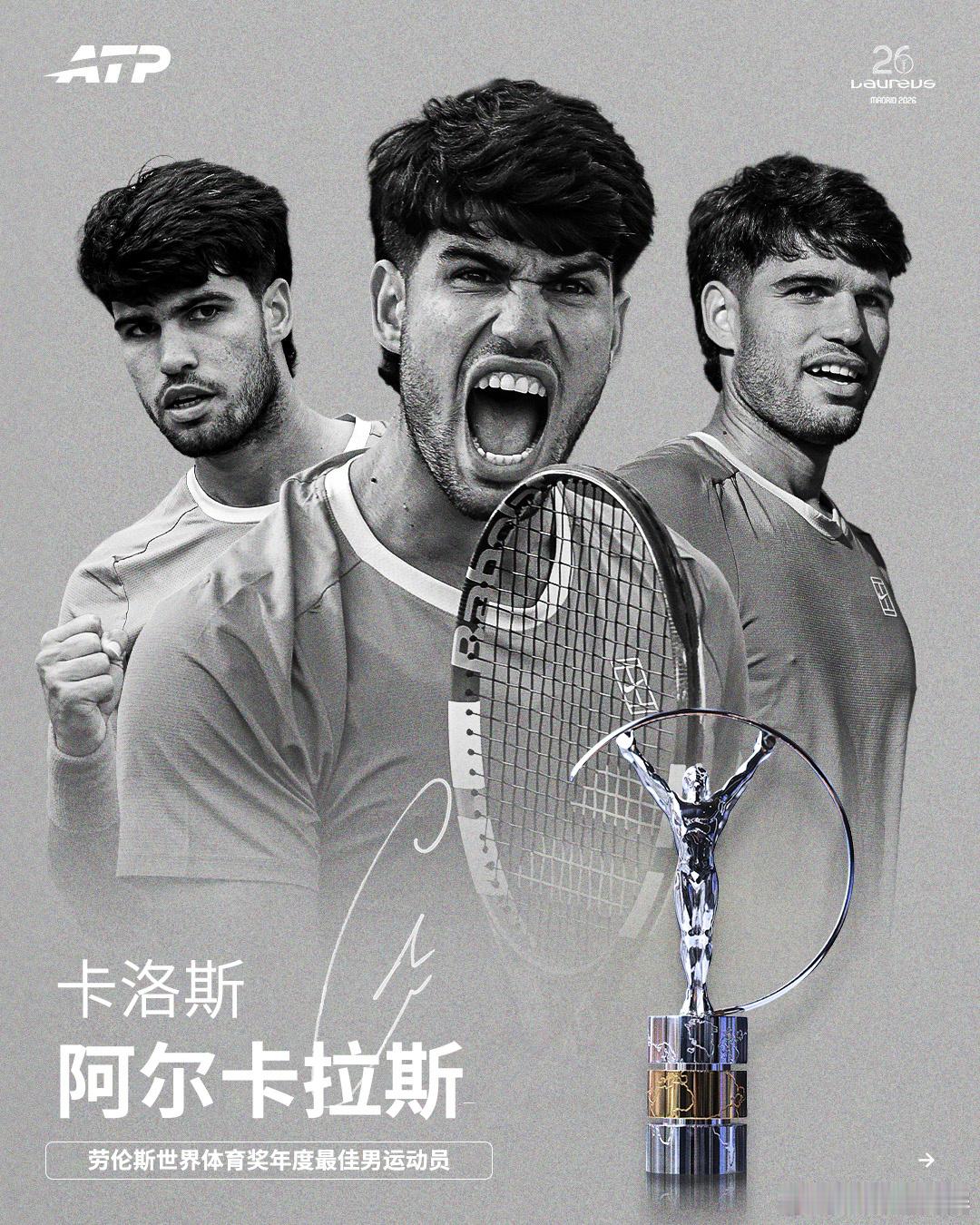 天空没有极限✨🏆全满贯➡️劳伦斯世界体育奖 年度最佳男运动员恭喜卡洛斯👏网来