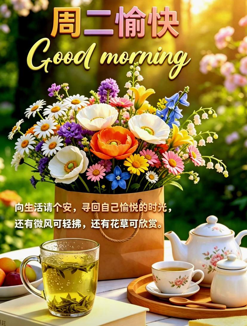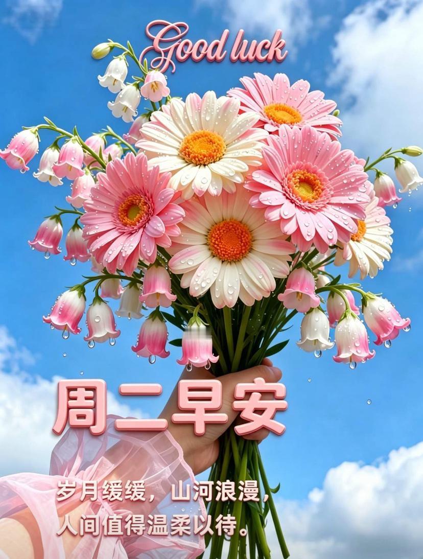 ☘️💐春暮夏初,风和日丽,绿意葱茏,生机满盈。崭新的一天悄然开启,把忙碌化作收获,把日子过成诗行。让欢喜盈满心房;一声问候暖心底,一份祝福伴朝夕。带着暖意投身日常,步履轻盆,愿你诸事顺遂、心境平和。日子舒心、平安常随、四季安康! 每一天都温暖明亮。