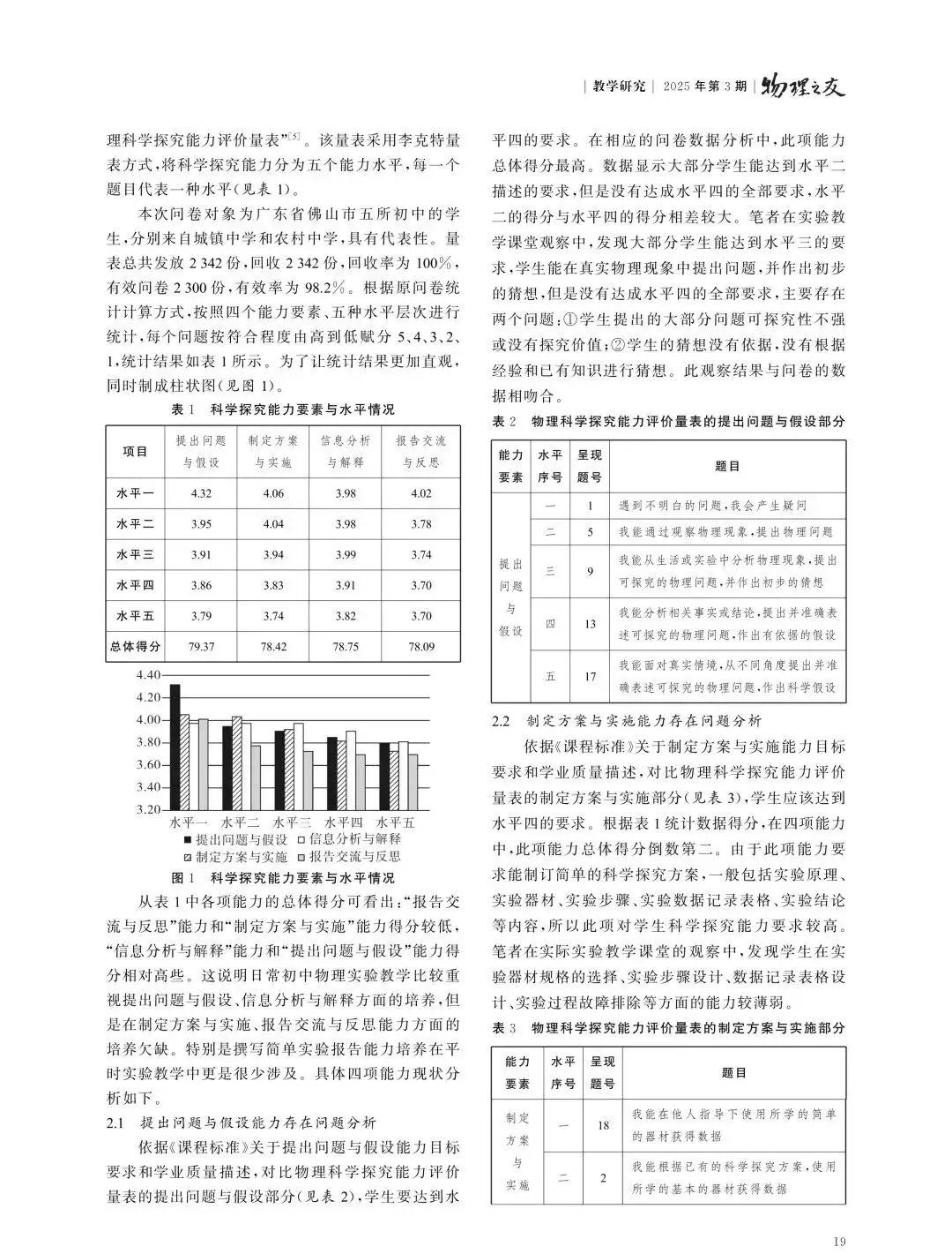 核心素养视角下初中学生物理科学探究能力调查研究