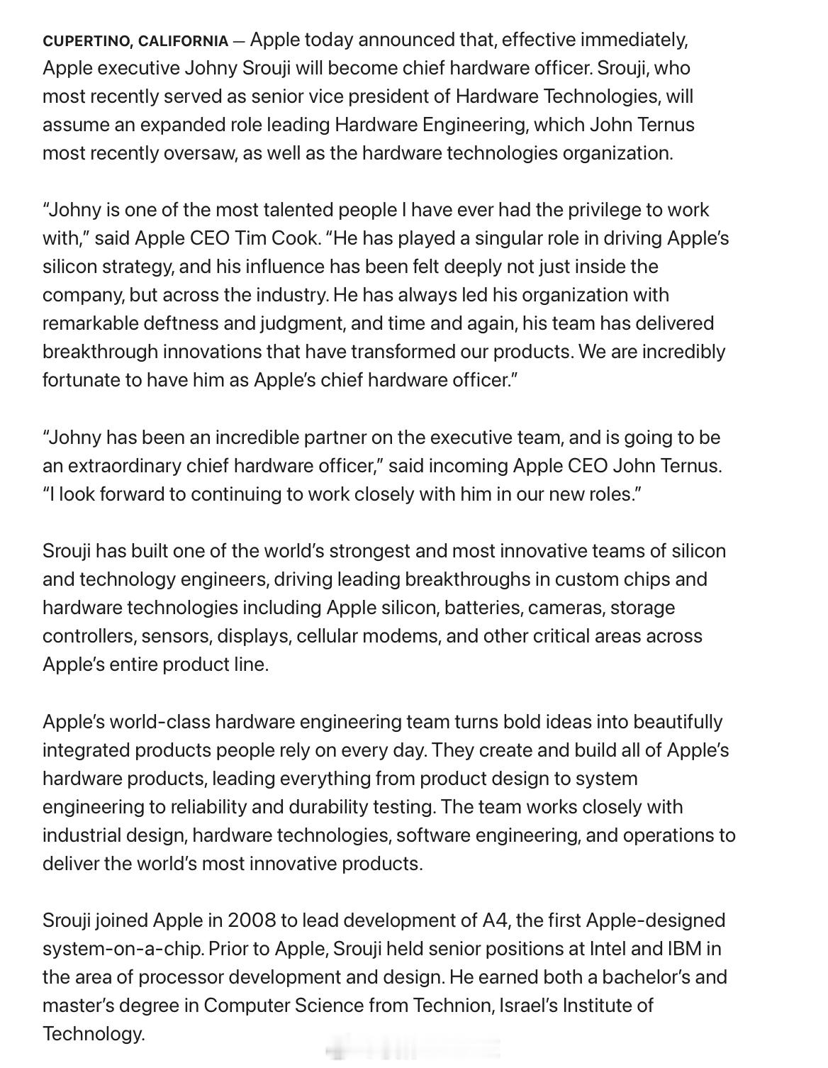 BREAKING: Tim Cook steps down. Ternus to CEO. 蒂姆·库克辞职,特纳斯接任CEO。