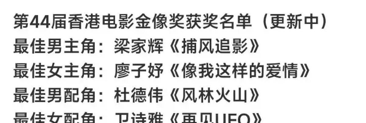 反倒是梁家辉,第五次把影帝抱回家,离梁朝伟只差一座;廖子妤凭一部小成本爱情片,把影后奖杯第一次攥在手心。