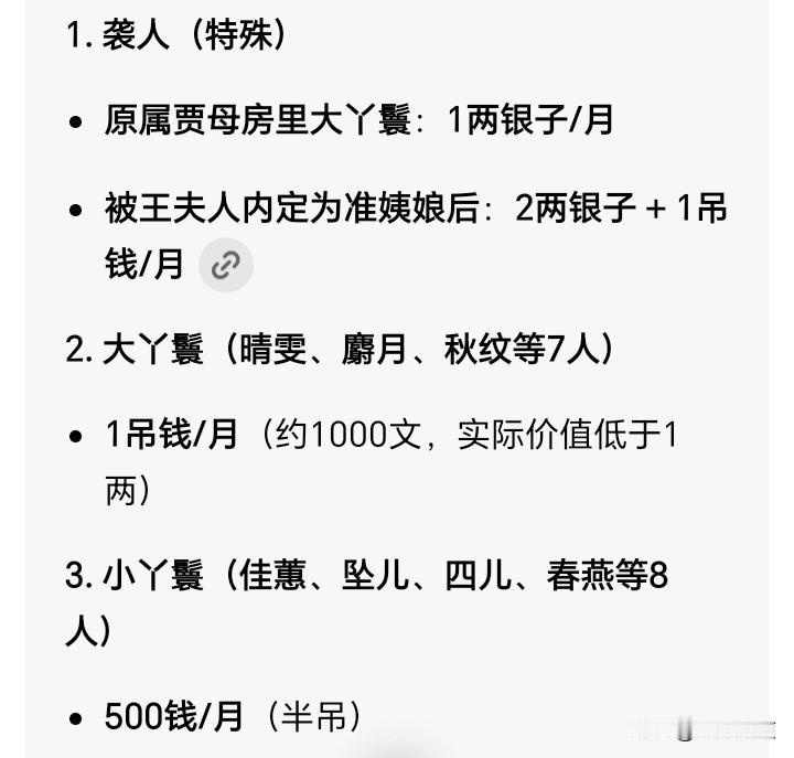 原来在《红楼梦》里,宝玉的大丫鬟月钱就远超“一两银子”的标准,连小丫鬟的半吊月钱,换算下来都比当下不少十八线县城的工资都体面。这波是穿越到古代,许多人连丫鬟都卷不过了。