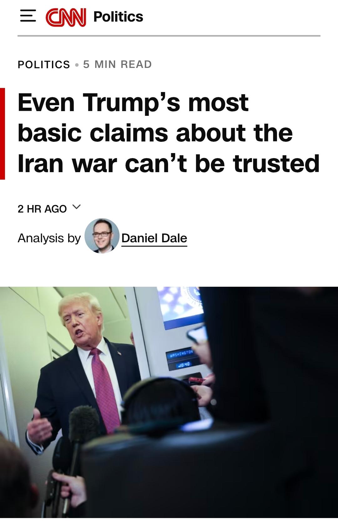 CNN:即使特朗普关于伊朗战争的最基本说法也无法被信任。