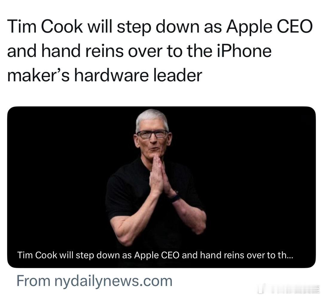 Tim Cook辞去苹果CEO职务,由现在负责硬件的高管接手(六月生效)Cook