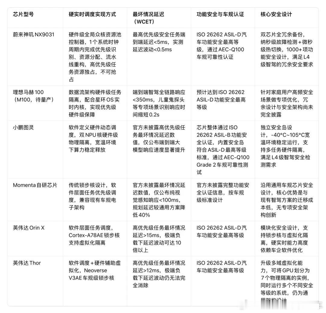 另外一个优势就是,做到了硬件级别的实时调度,可以满足ISO 26262 ASIL-D汽车功能安全最高等级,可以单独给AEB或者AES等场景最高优先级处理,不会被其他处理任务影响安全,最高时延不超过5ms,实测低于0.5ms