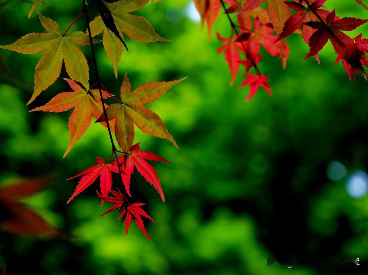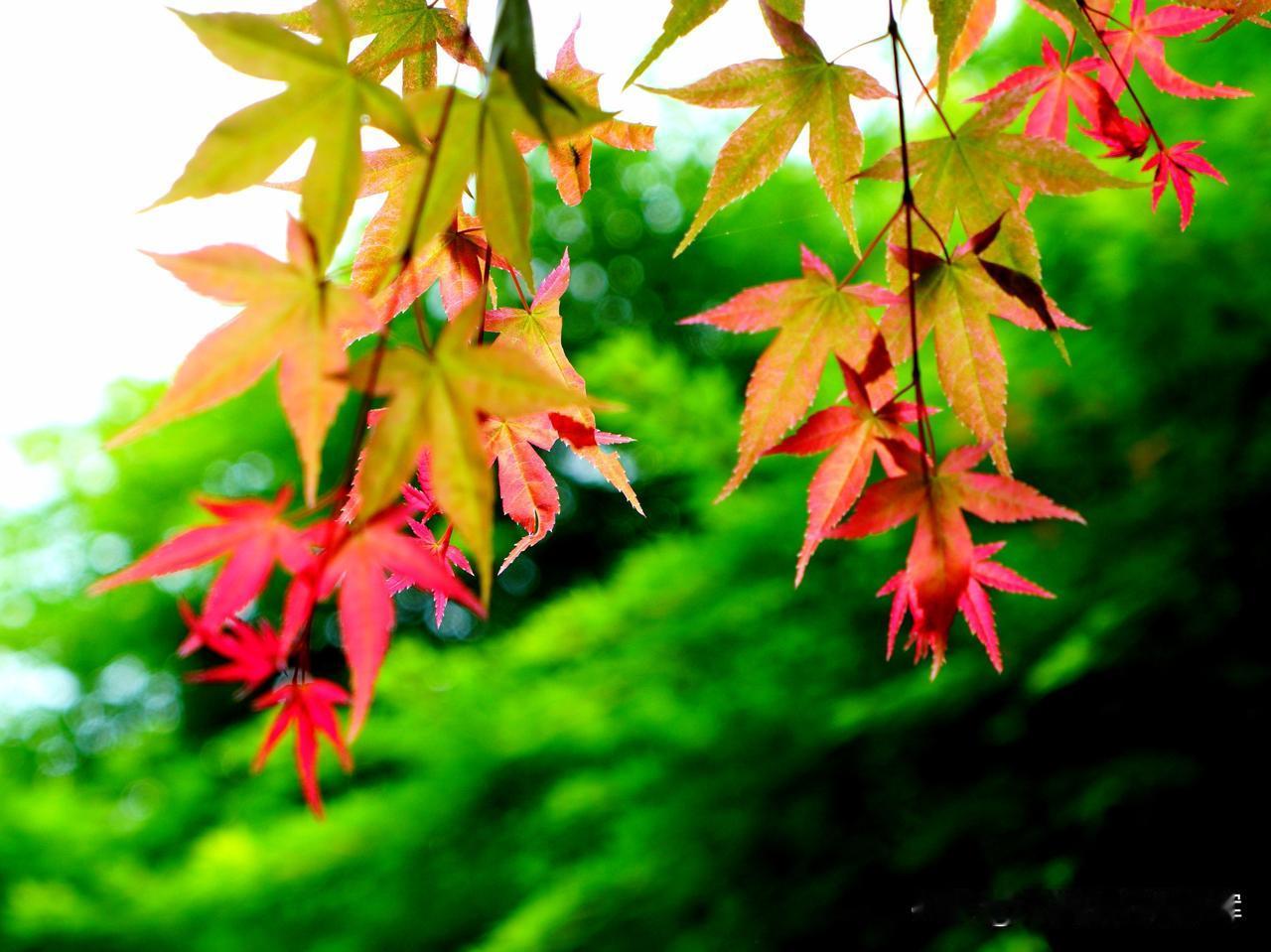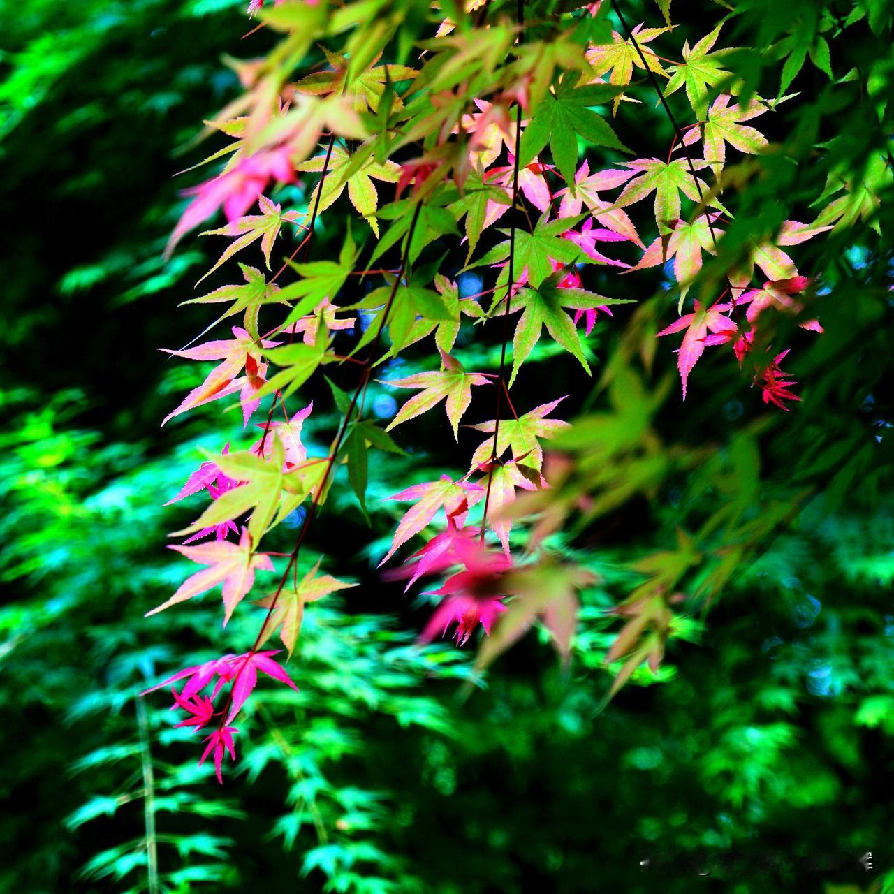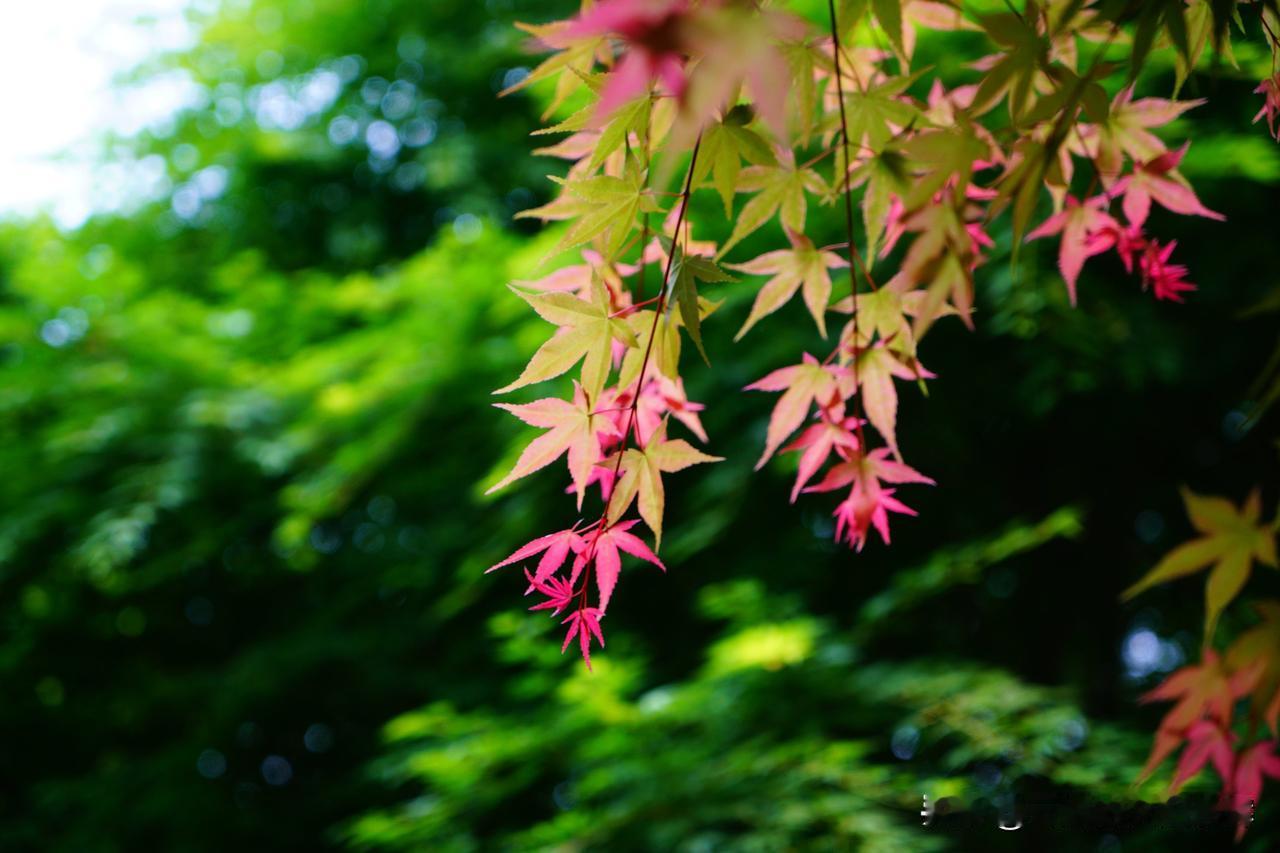 春日的枫叶枝头,新叶还带着鹅黄的软,叶尖却悄悄染了胭脂色,像藏了半分夏的热烈、半分秋的温柔,在风里轻轻晃着。