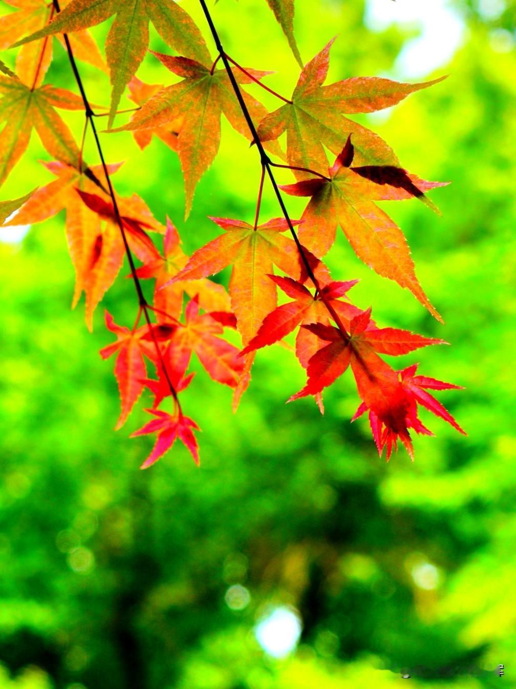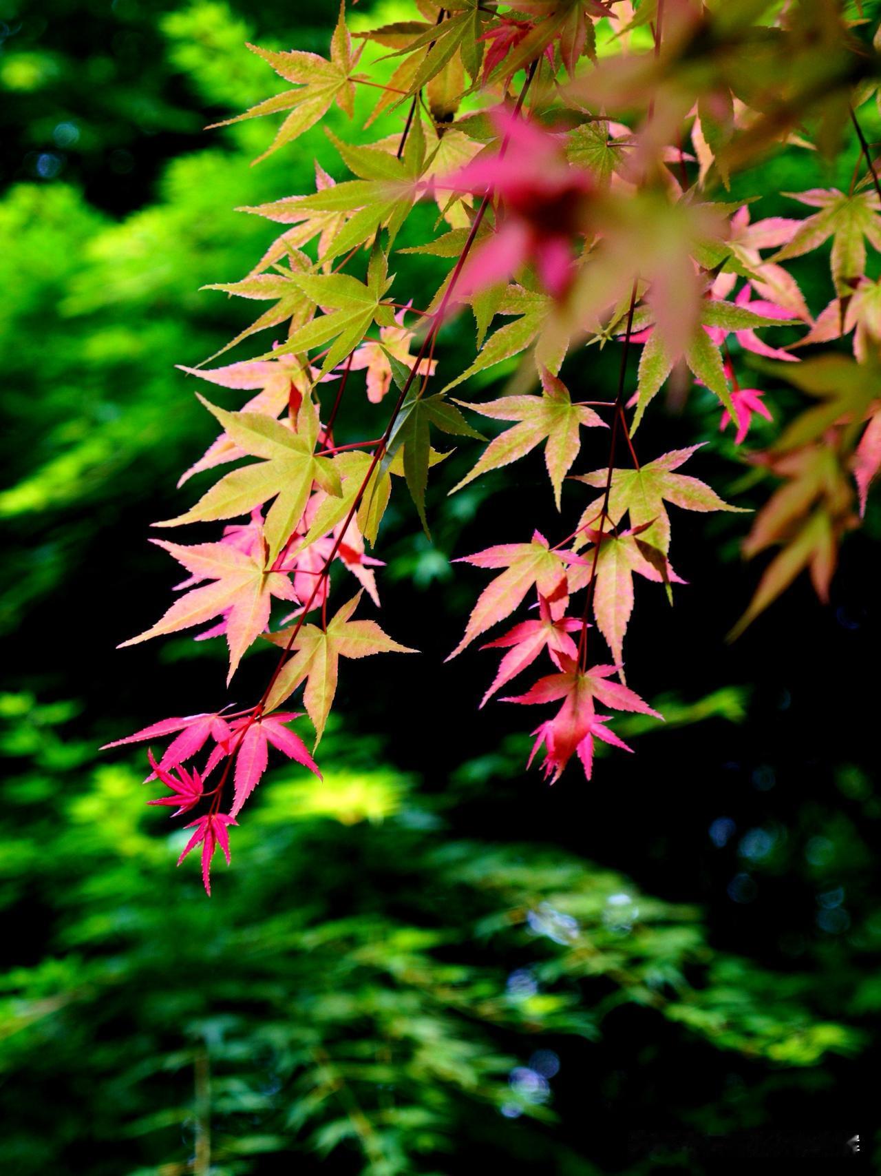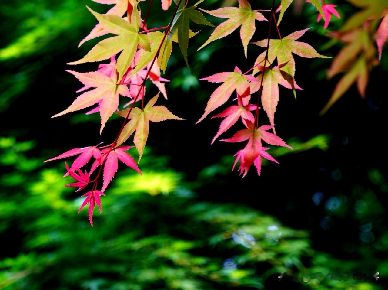 春日的枫叶枝头,新叶还带着鹅黄的软,叶尖却悄悄染了胭脂色,像藏了半分夏的热烈、半分秋的温柔,在风里轻轻晃着。