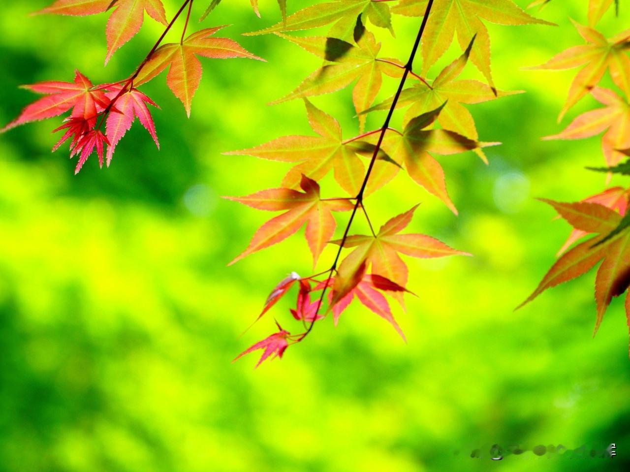 春日的枫叶枝头,新叶还带着鹅黄的软,叶尖却悄悄染了胭脂色,像藏了半分夏的热烈、半