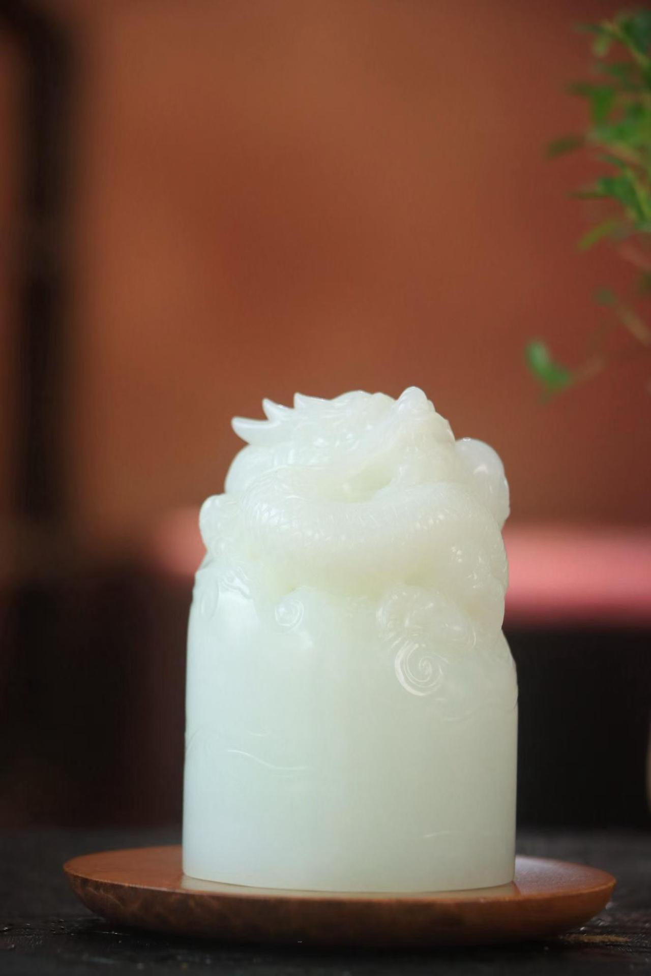 新疆和田玉羊脂,臻品❤️玉质细腻莹润,🍃盘龙匐于印章,青云直上,傲视群雄;神龙代表神武、力量、财富、权势、王者风范,护身祈福,至祥至瑞。