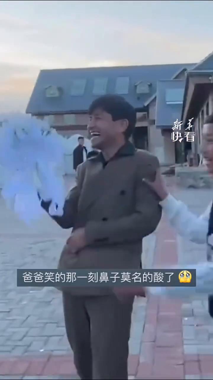 婚礼上男孩飞身抢到代表幸福的手捧花,躲过人群,他的目光鉴定,转身跑向爸爸,他知道他爸爸永远都在自己背后看着自己,坚定奔向人群边缘的父亲。爸爸笑的那一刻鼻子莫名的酸了,我为什么哭呢?这孩子真的太善良了。