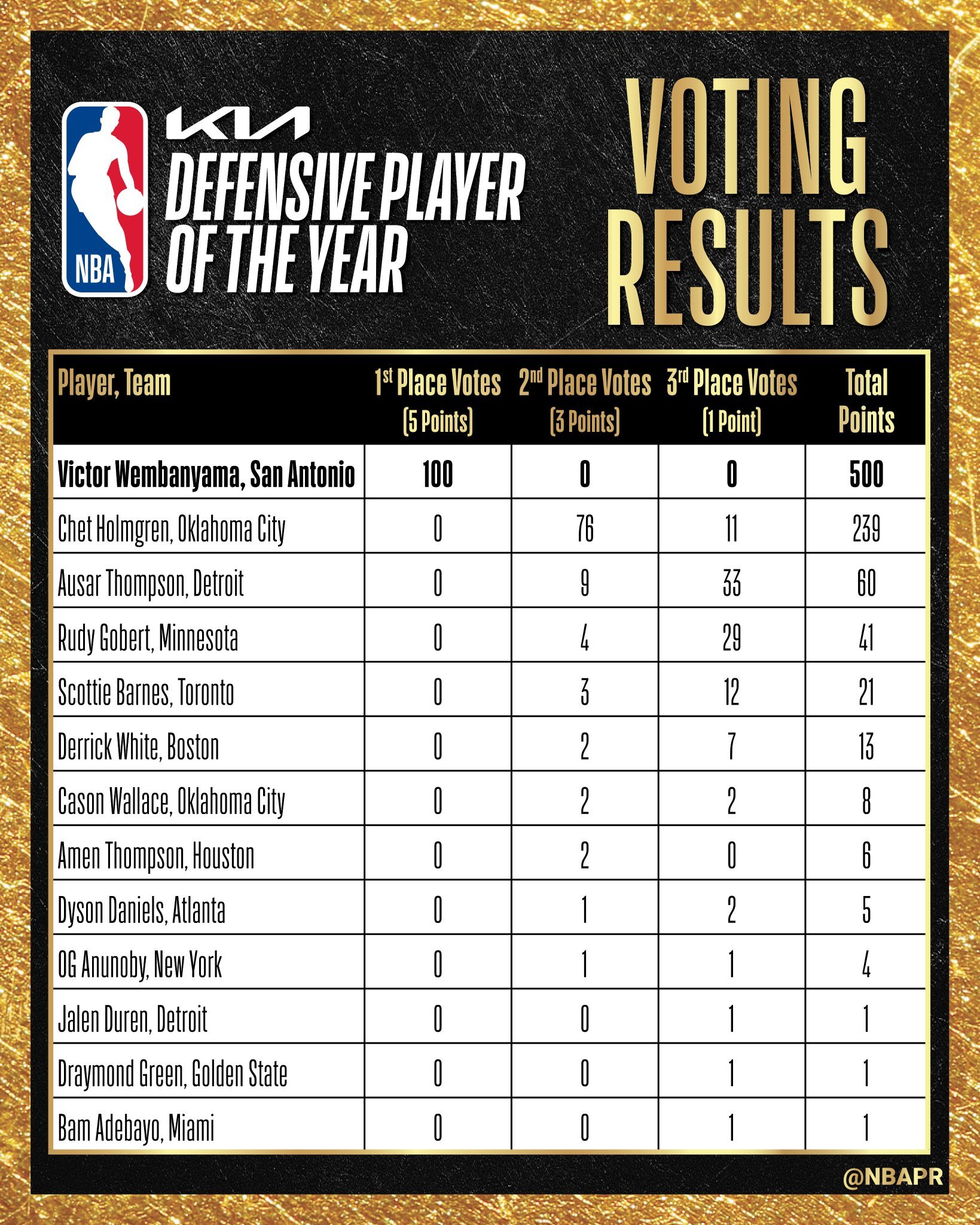 文班亚马当选2025-26赛季NBA年度最佳防守球员,选票断档领先! 他是自19