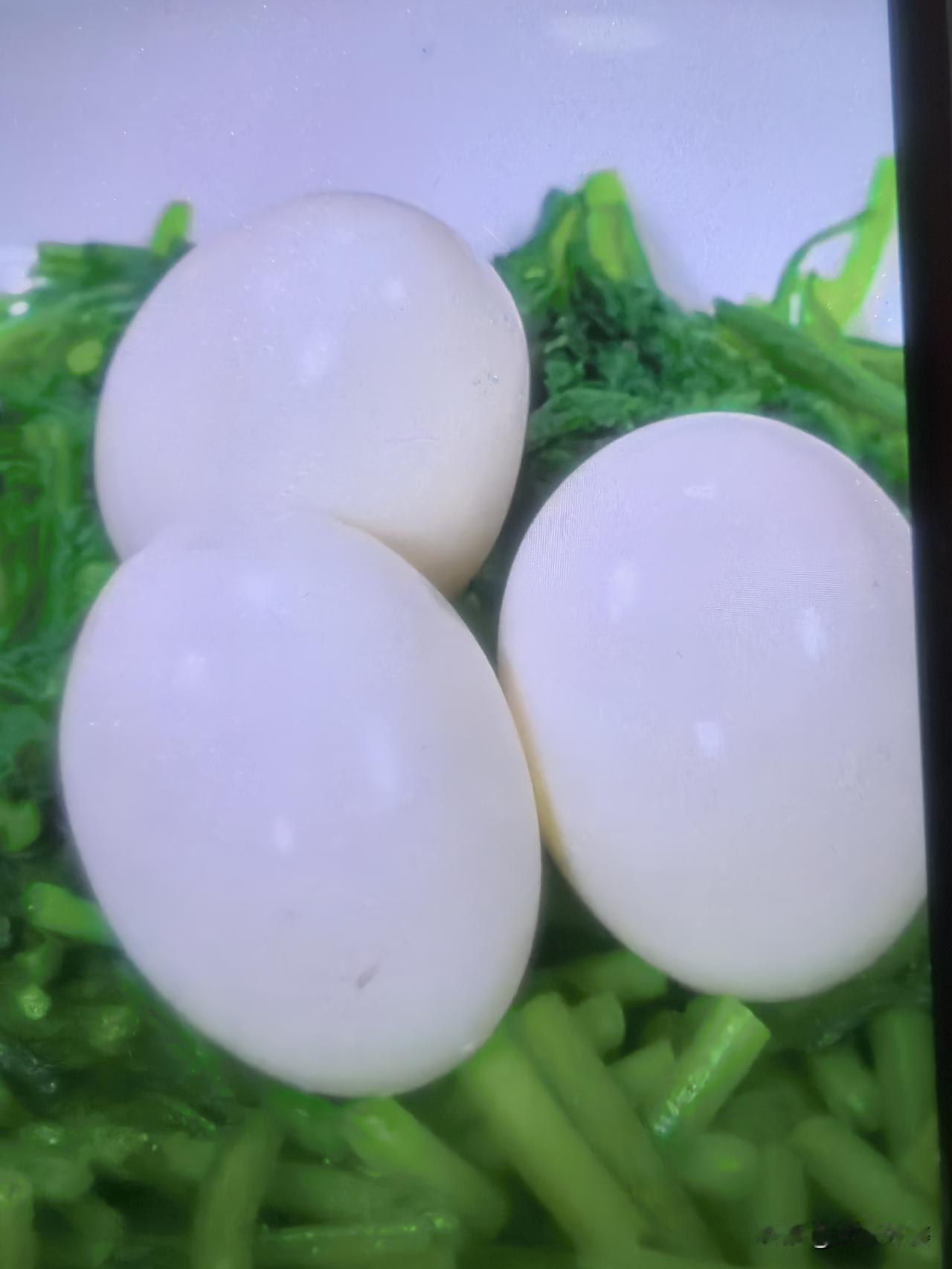 2.两个水煮鸡蛋去皮抓碎,和茼蒿放一起