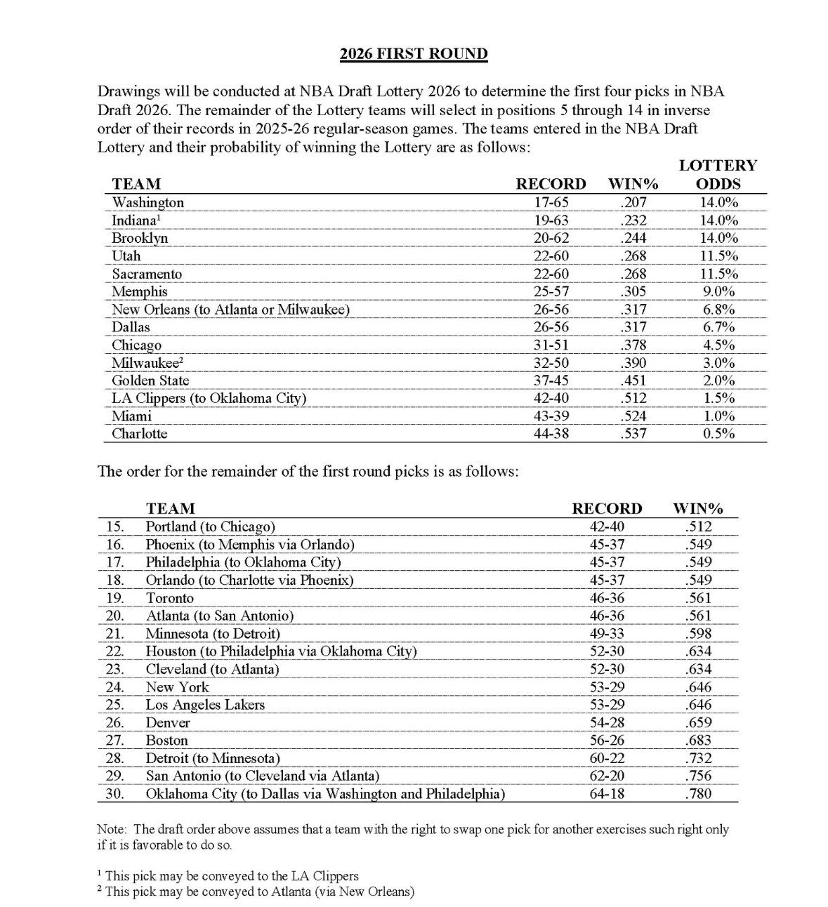 同战绩顺位抽签结果出炉:湖人获25顺位,尼克斯获24顺位!