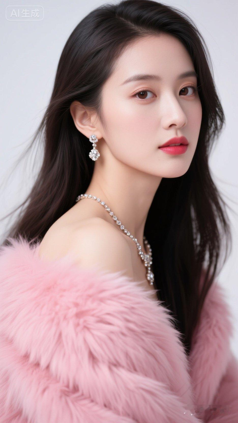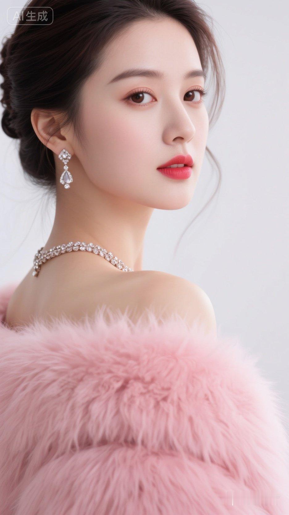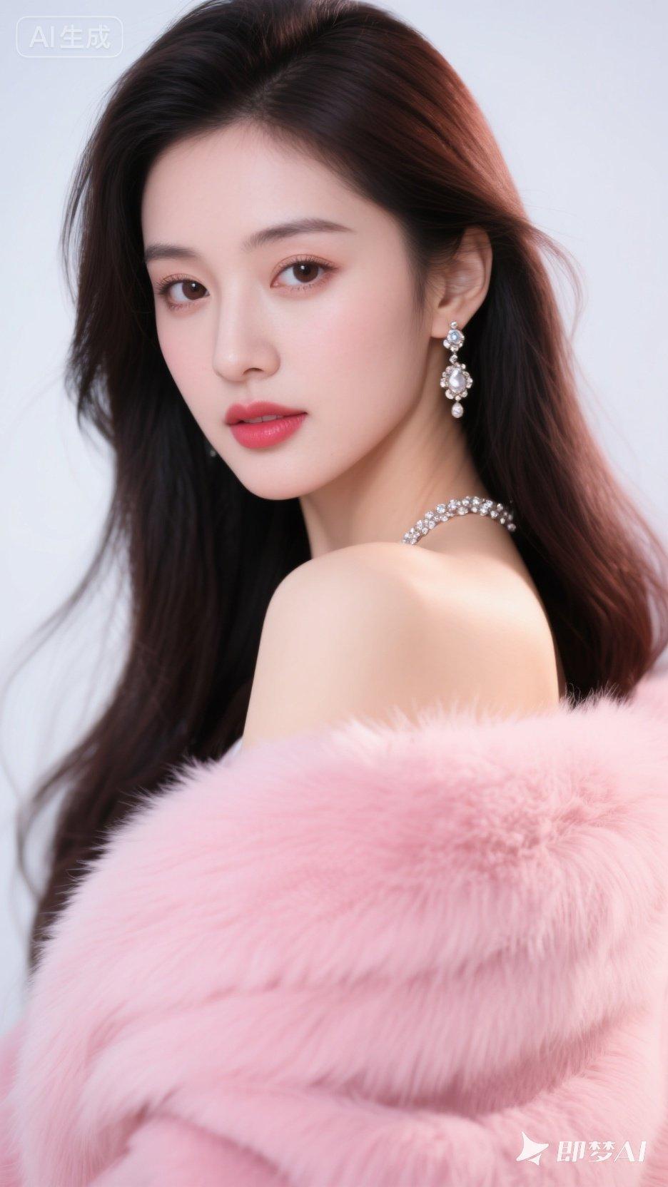 优雅气质,粉色连衣裙,高跟鞋,自信微笑