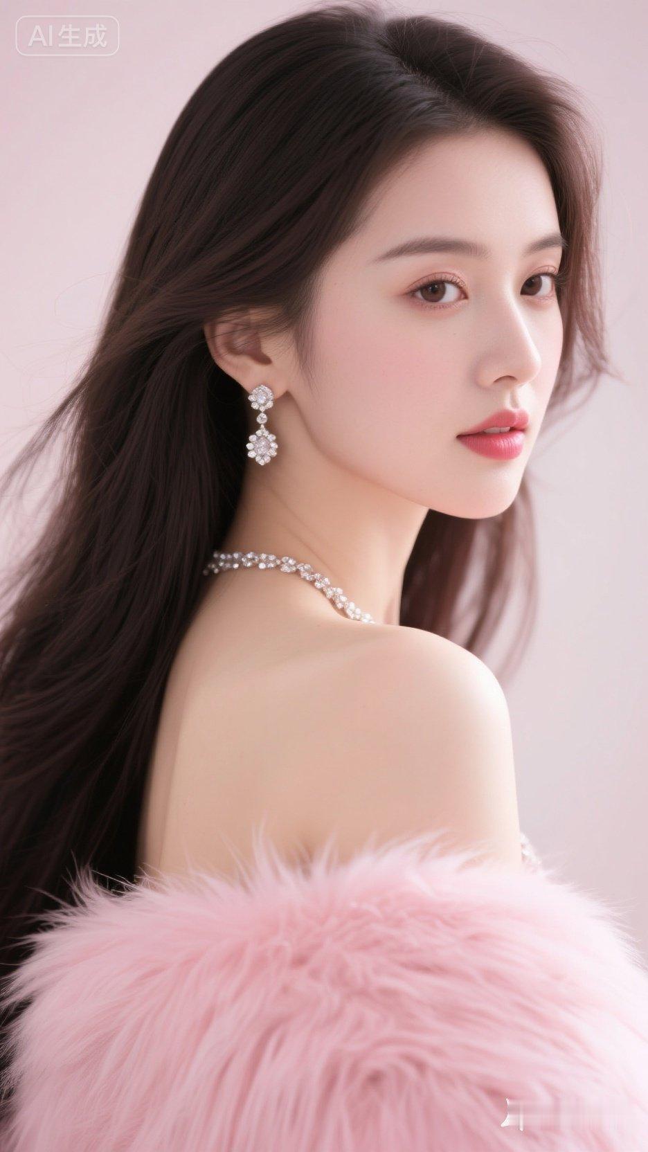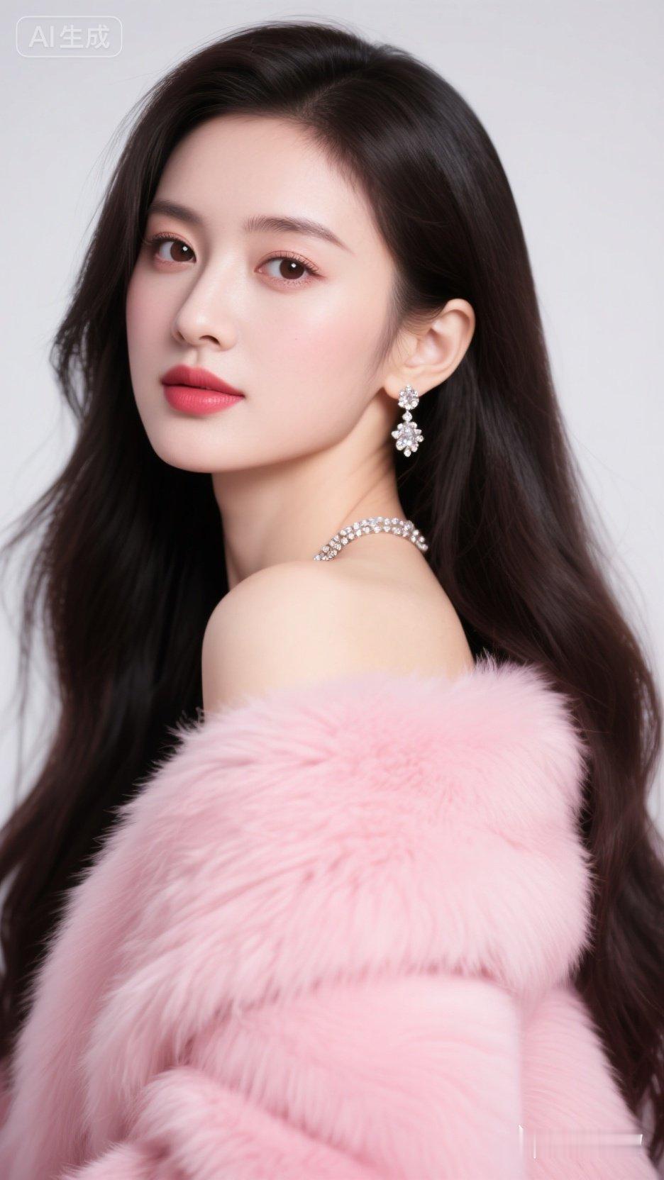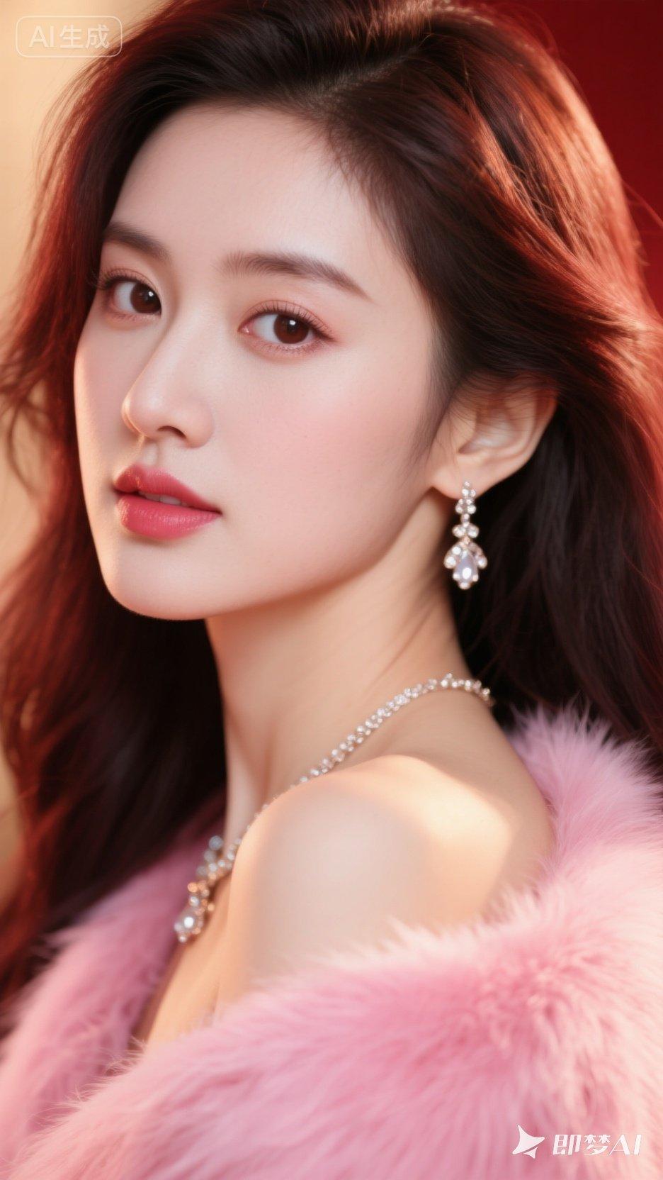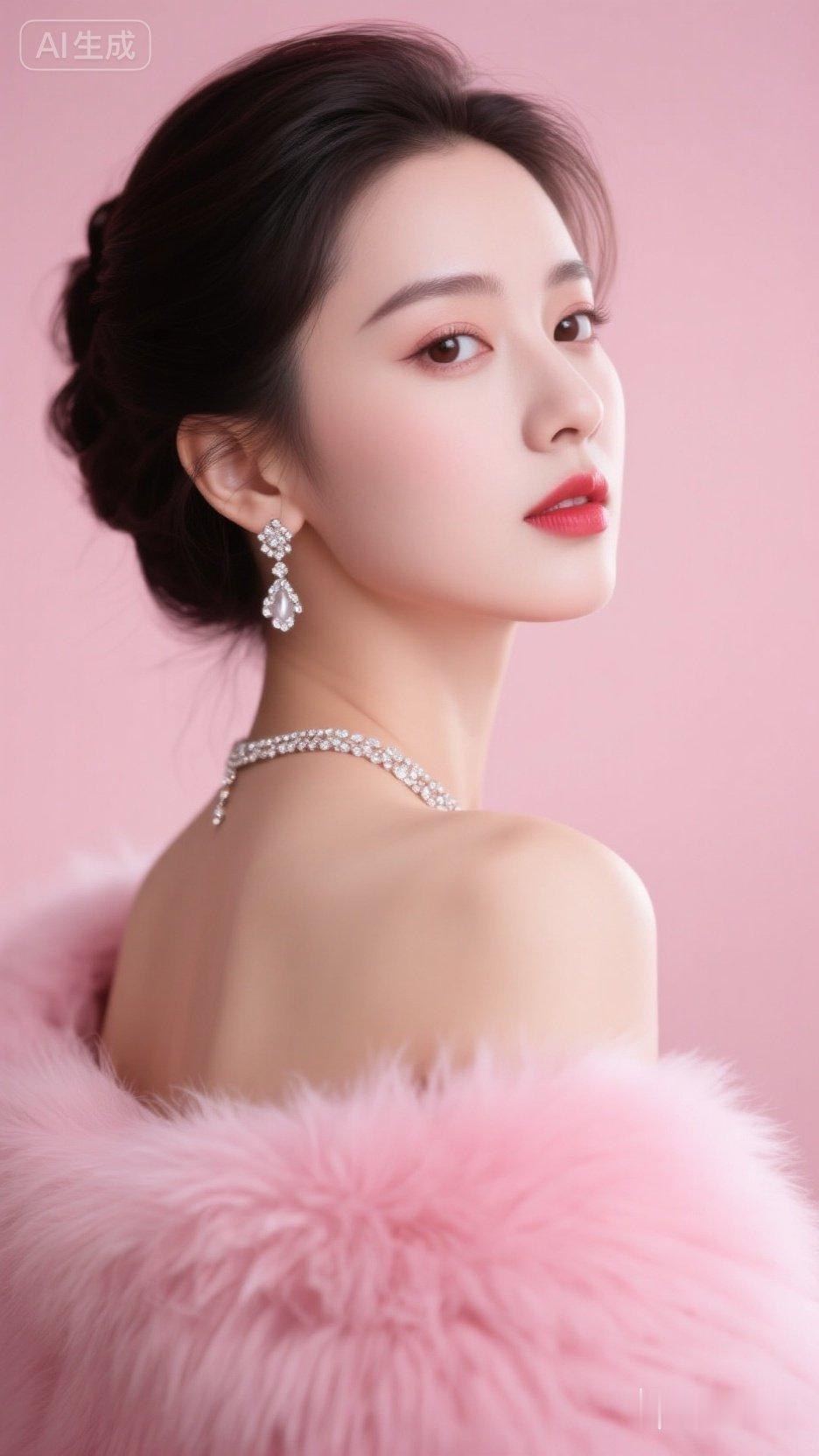 优雅气质,粉色连衣裙,高跟鞋,自信微笑