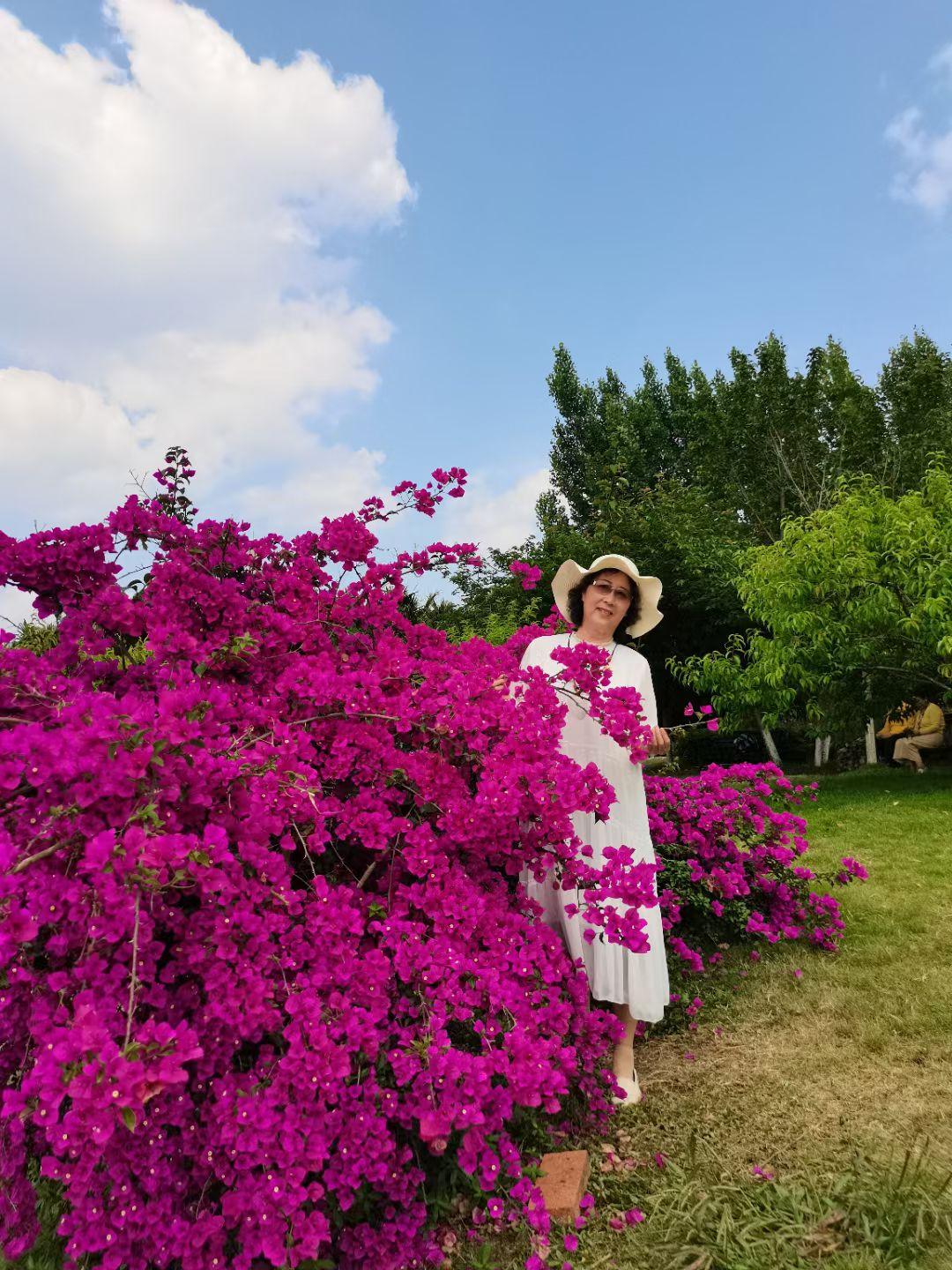 如今我在成都颐养天年,经常与姐妹们出去玩耍,只要看见三角梅,就会驻足欣赏,在花前拍照留念(图2,3)