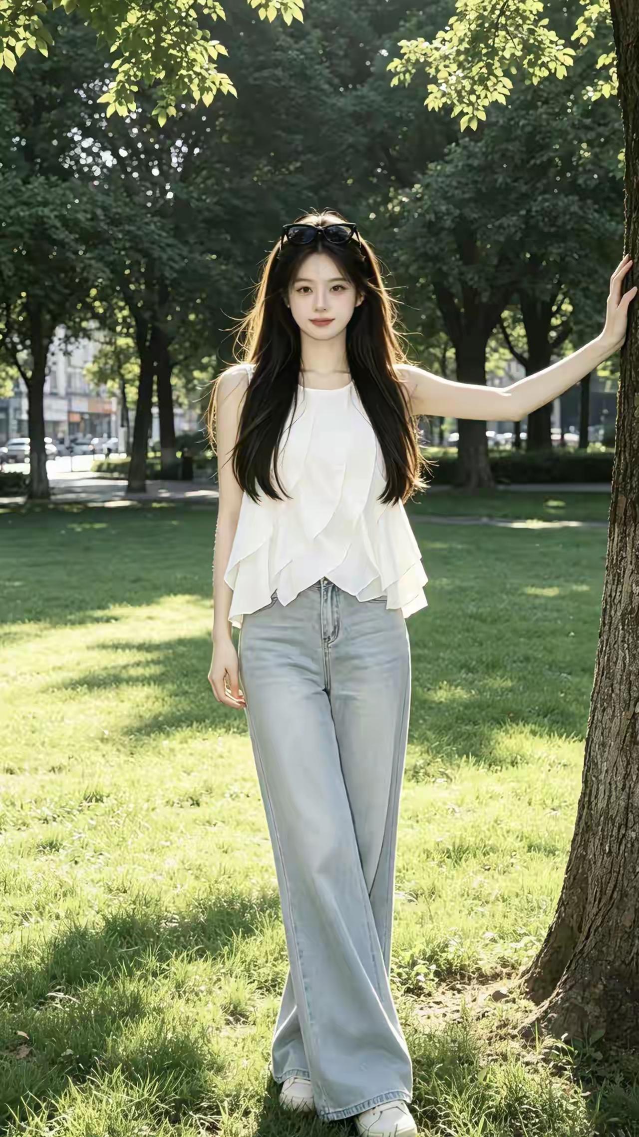 春夏最爱还是牛仔,怎么都穿不厌!阔腿牛仔裤是显瘦神器,搭配白背心、针织衫或衬衫