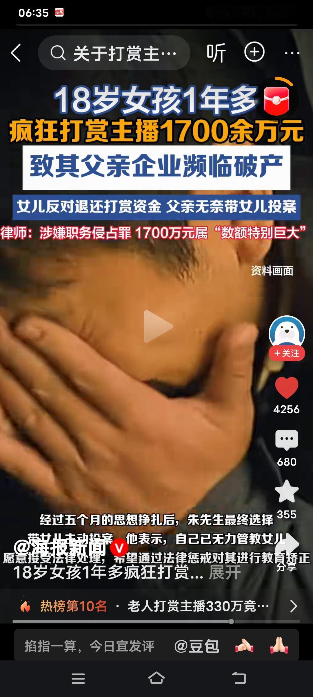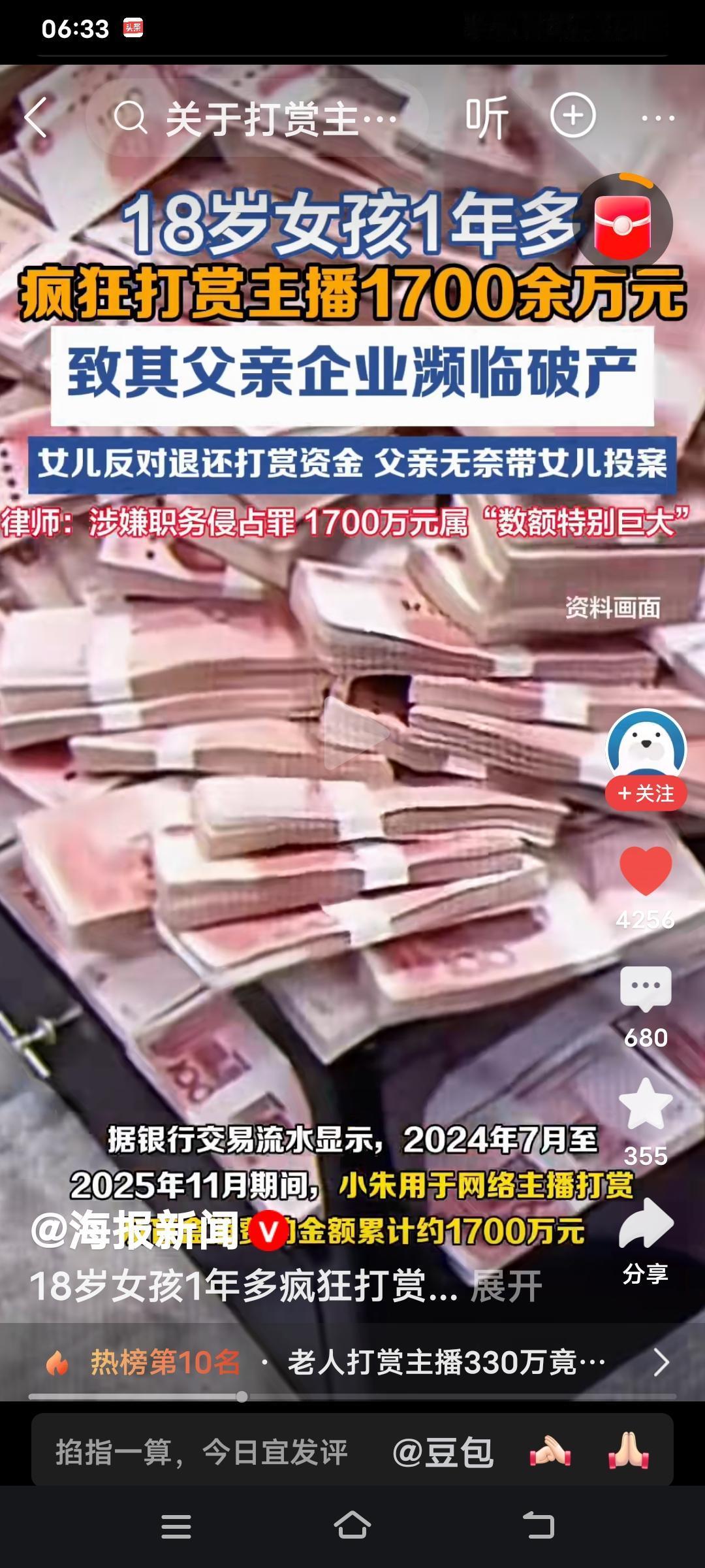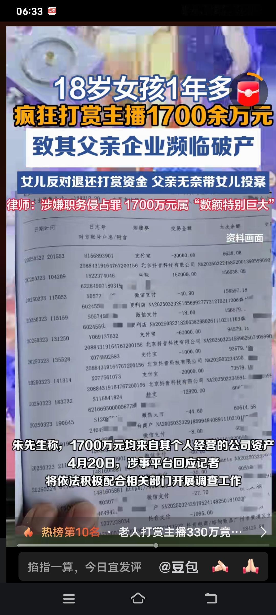 如今的新闻,实在是让人惊掉下巴!2024年7月至2025年11月期间,河南郑州18岁女孩小朱挪用父亲公司1700万公款,疯狂打赏主播、购买盲盒,直接把家族企业逼到了破产边缘。