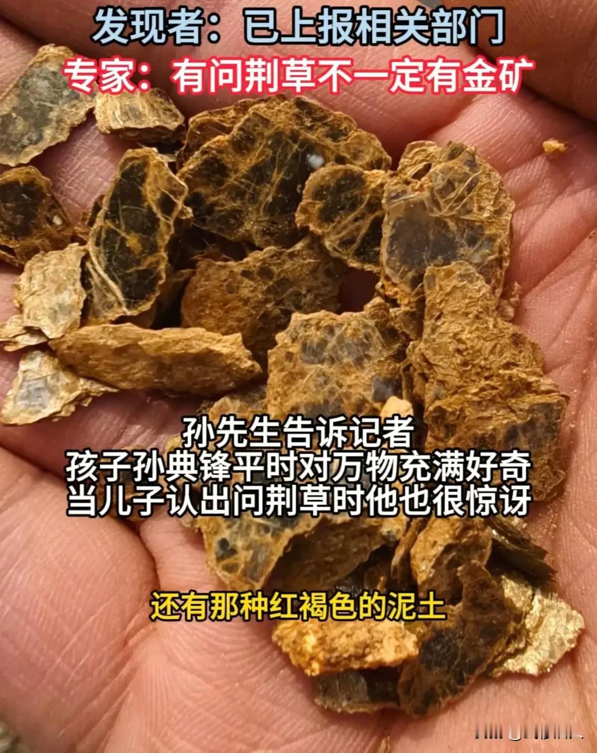 4 月 16 日,大连庄河大营镇附近山上,8 岁男孩孙典锋随家人挖野菜时,发现大片问荆草和含云母石块,稚嫩却笃定地喊出:“山下有黄金!”